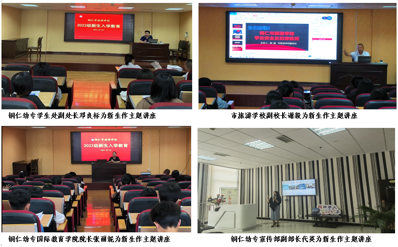 入学教育邀请了铜仁幼专学生处副处长邓良标、国际教育学院院长张丽妮、宣传部副部长代英分别为学生作了《中职学生管理》《未来之“旅”扬帆起航》《爱上图书馆 爱上阅读》的讲座,对中学生如何做到遵规守纪、如何爱上自己的专业、如何做好学习规划、如何学好在校礼仪、如何爱上阅读等方面进行了详细的讲解。通过中高职教师资源共享、形成合力、共同育人,帮助新生尽快融入职校学习生活,助力学生成长,做到入学教育有深度。