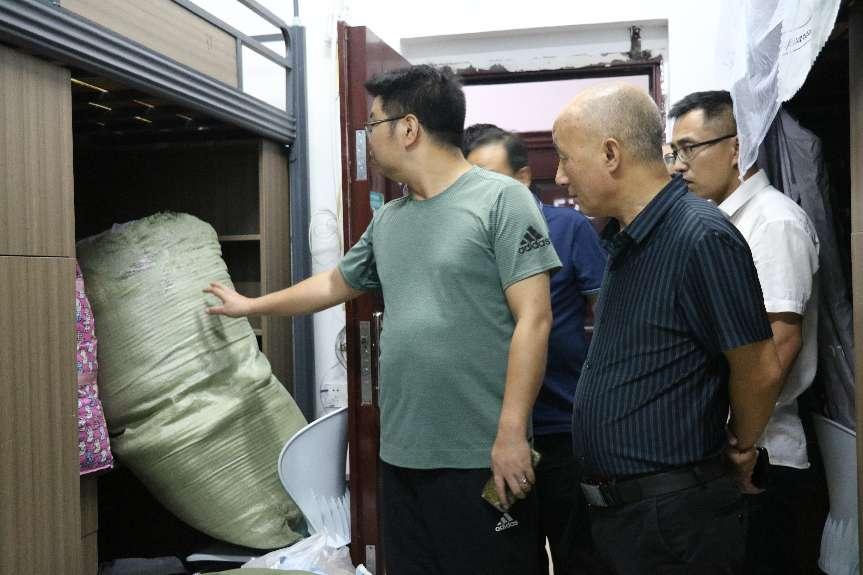 大扫除整个过程中,刘文武、代晓明一行对本学院的卫生区域进行了检查,并对部分寝室电器安装不规范以及寝室卫生状况提出了整改意见。随后向学前教育学院联合办学本科专业2022级新同学表示慰问,咨询新同学是否习惯寝室生活,是否适应校园环境等问题。
