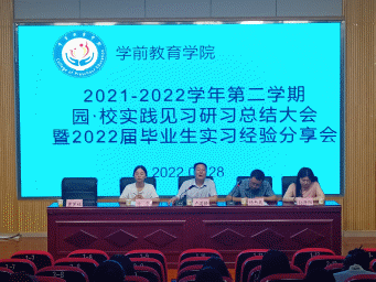 为扎实推进专业内涵建设,落实“学生中心、产出导向、持续改进”的师范专业认证理念,达成“一践行三学”的毕业要求,学前教育学院于6月28日晚上19:00在一号阶梯教室,组织召开学前教育、特殊教育、早期教育2021-2022学年度第二学期园·校实践总结大会暨2022届毕业生实习经验分享会。院党总支书记卢道静,特殊教育专业负责人孙丹阳、幼儿园见习指导老师代表方忍、校内见习指导教师代表、各专业学生代表参会,会议由教务科科长杨杰兵主持。