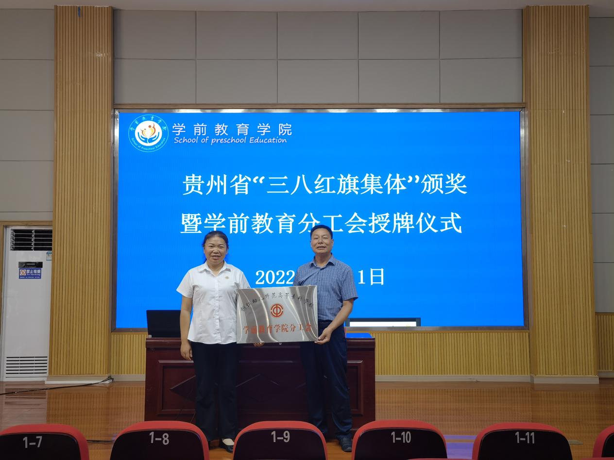 王贵勇为学前教育学院授“贵州省三八红旗集体”牌