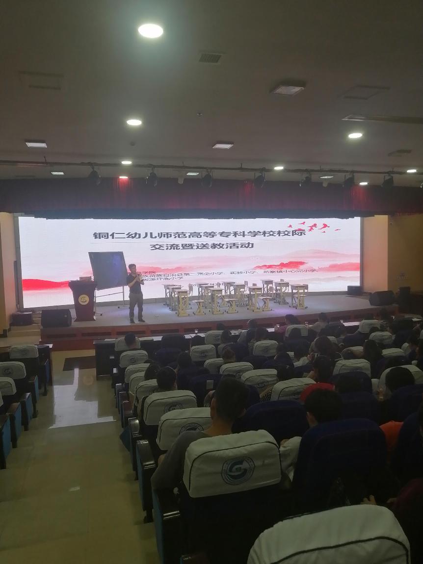 6月25日下午,初等教育学院特邀印江县三位教学名师在学术报告厅开展数学教学示范课。讲座由教务科张蕊老师主持,小学教育专业和小学数学教育专业的在校学生到场聆听,院党总支副书记李绍兵出席讲座活动并作点评。