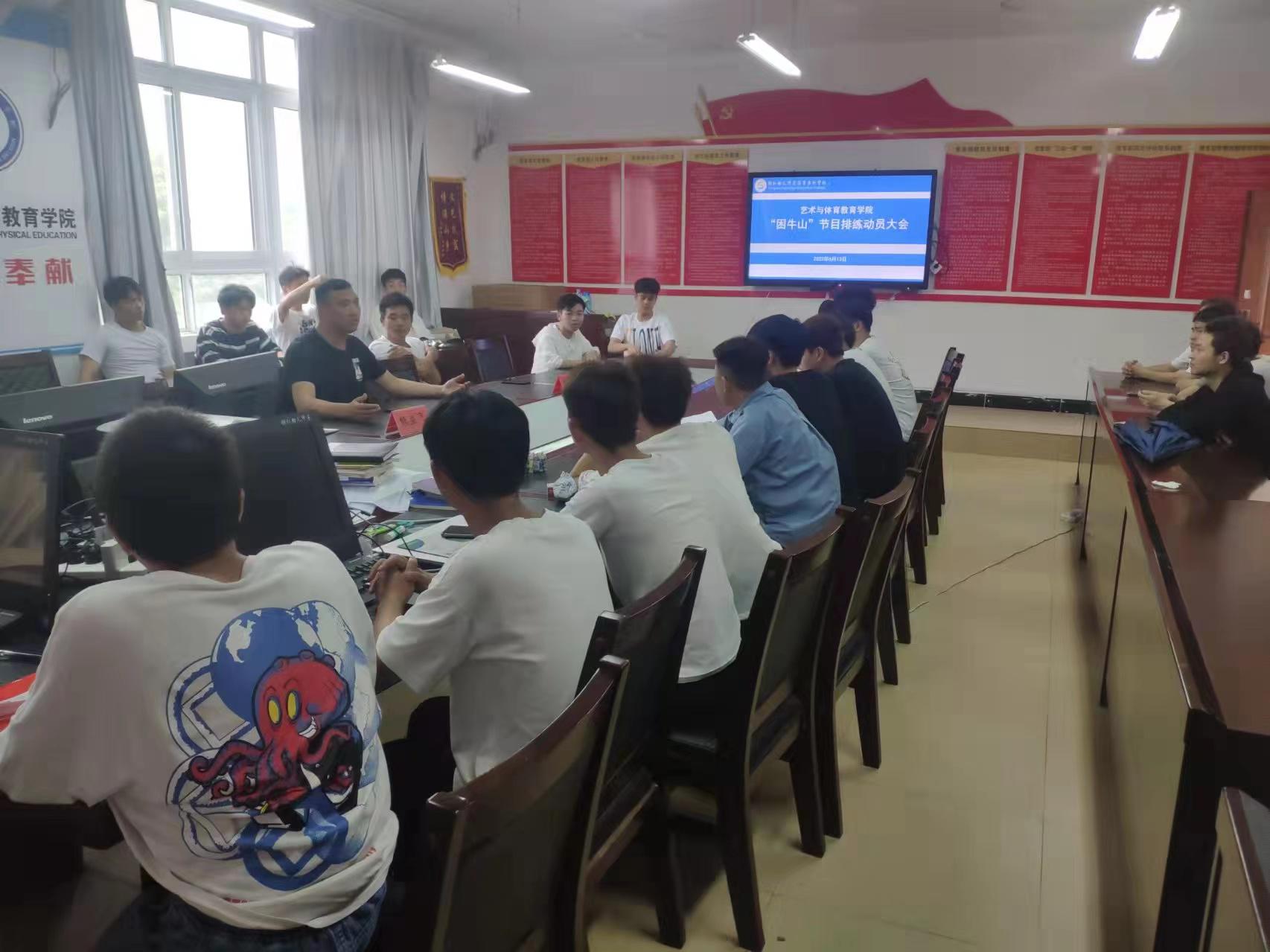 近日,艺术与体育教育学院在八栋二楼会议室召开历史情景剧《困牛山壮举》节目排练动员大会,由学生科副科长谢宣明老师主持,舞蹈A2103班18名男生、舞表A2101班4名男生参会。