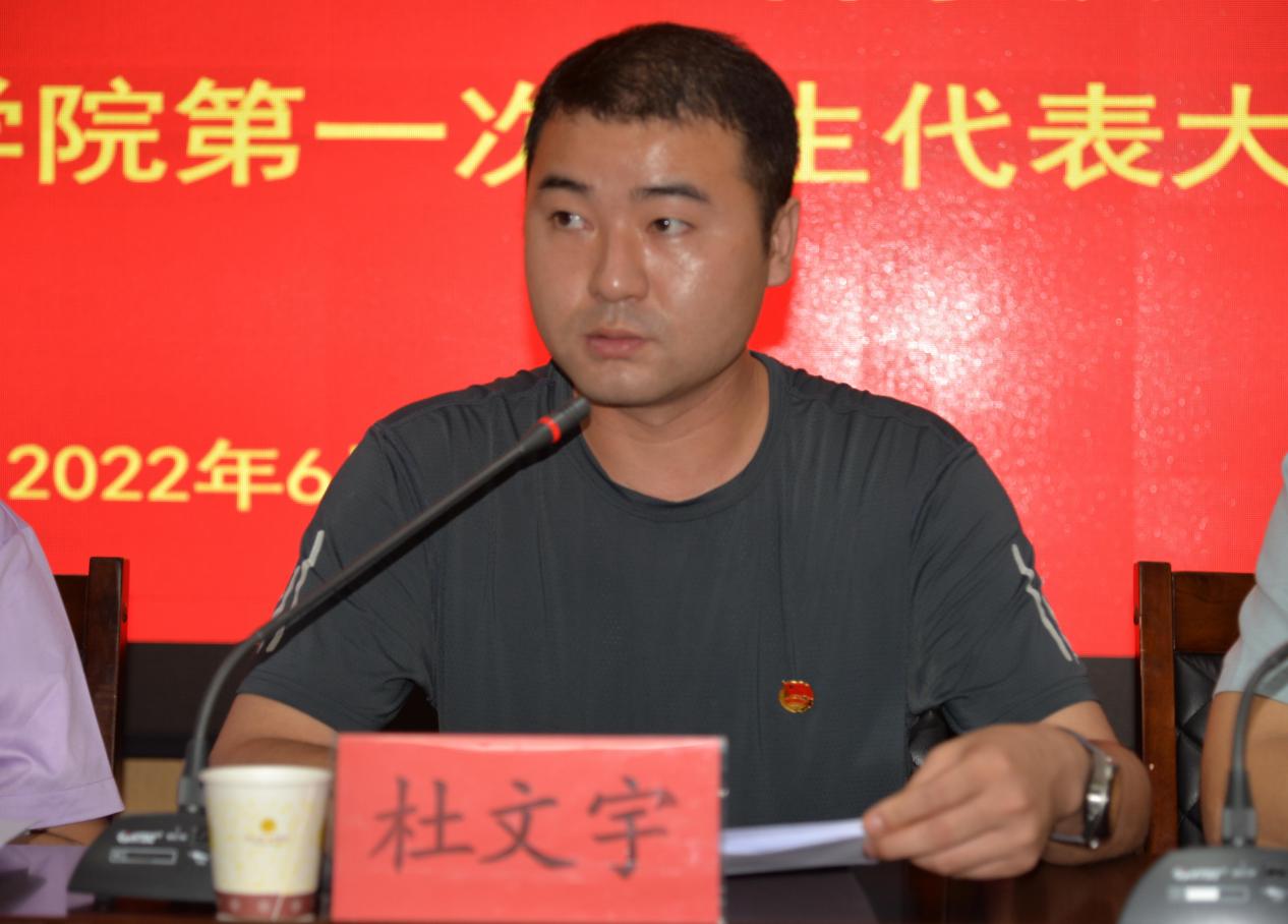 杜文宇在致辞中对大会的顺利召开表示热烈祝贺,希望马克思主义学院学生会团结带领广大青年坚定理想信念、找准人生航向,加强品德修养、提升服务能力,培养奋斗精神、书写无悔青春,在实现中国梦的历史接力赛中奋勇争先,努力跑出当代青年的好成绩。