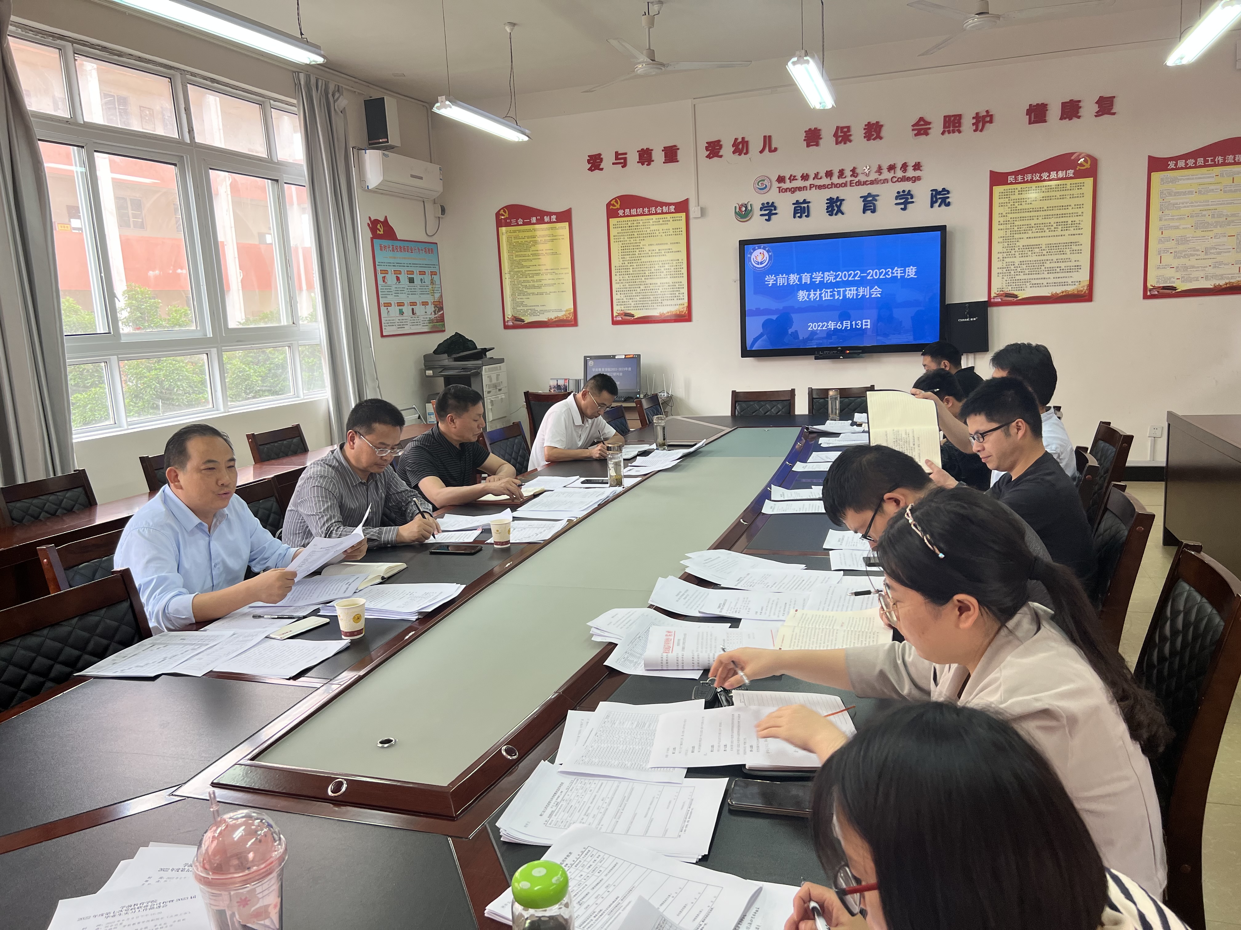 为贯彻落实国家关于加强和改进新形势下教材建设的总体要求,根据学校教材选用管理办法,扎实推进教材选用工作的科学化、制度化和规范化。6月14日,学前教育学院2022-2023学年度教材选用审核会在院会议室进行,院领导班子成员、各部门负责人及四个专业负责人参会,会议由学前教育学院副院长代晓明主持,校党委副书记龙树明到会指导。