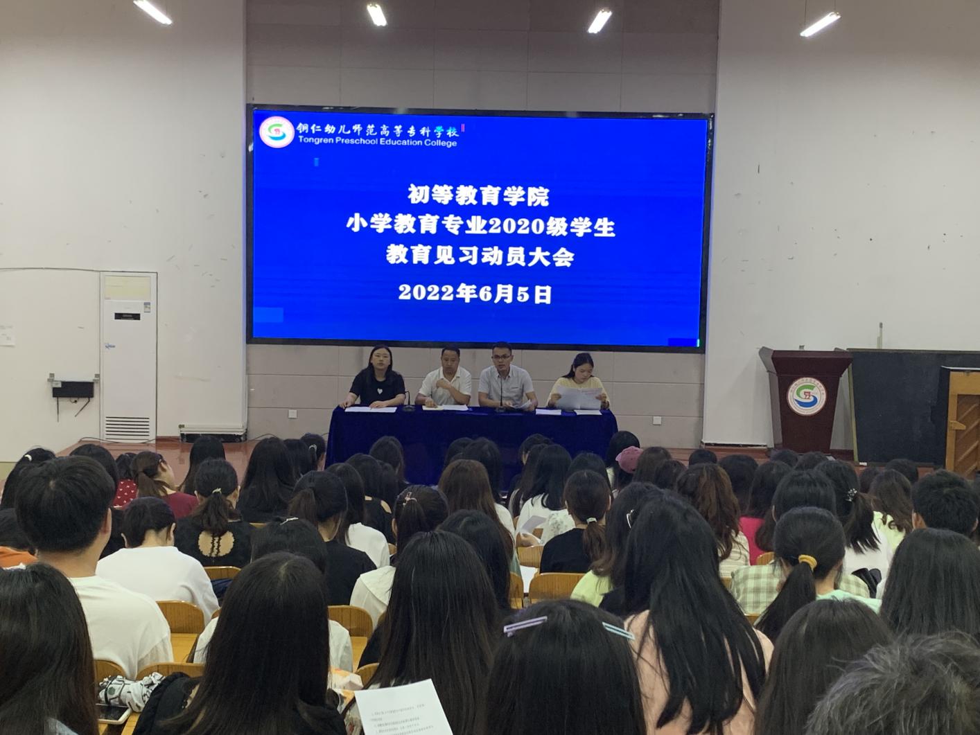 6月5日,初等教育学院在三号阶梯教室召开了小学教育专业2020级学生教育见习动员大会,会议由教务科副科长杨公禄主持,院长杨胜茂、带队老师郑静、周曾芹及小教A20级全体学生参加大会。