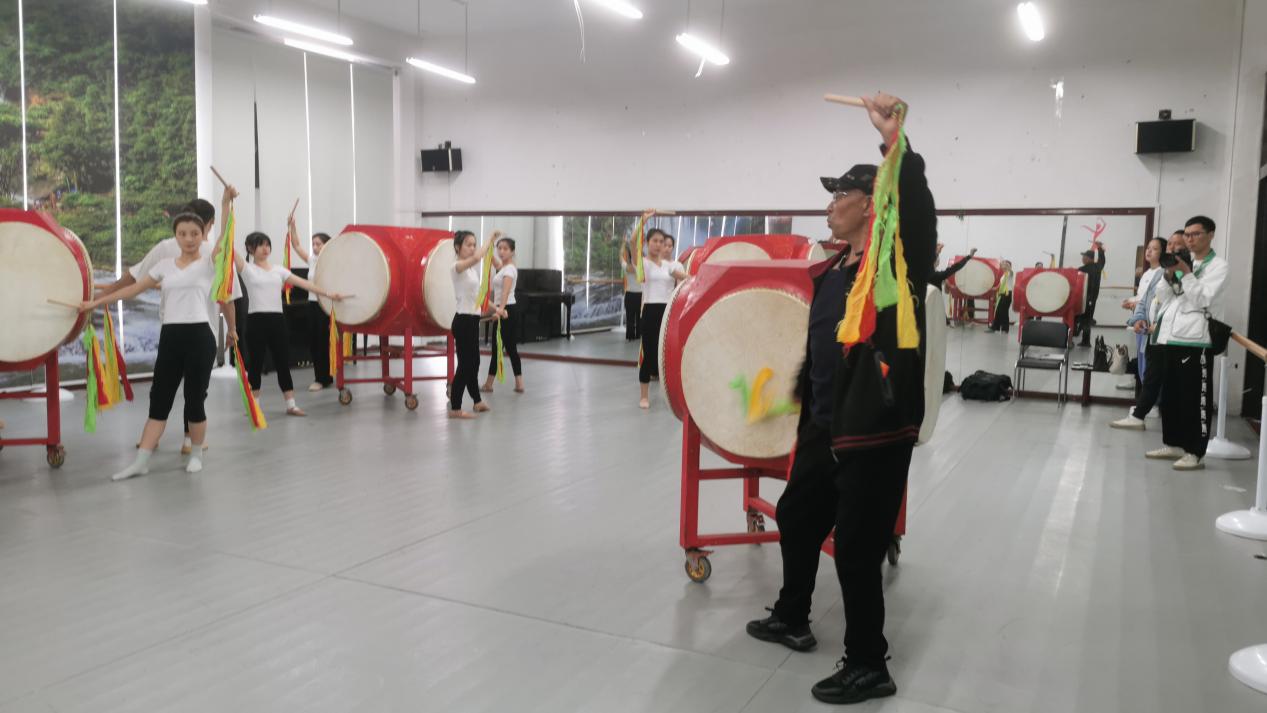 在艺馨楼舞蹈室,两位传承人为师生进行了现场授课,展示并传授非遗技艺,讲解动作的重点和难点,指导师生现场练习。龙云辉老师打的花鼓既有寸劲、也有巧劲,动作连贯、娴熟。许朝政老师跳的花灯很有当地的韵味,包括眼神的交流,一招一式都在“戏里”。两位传承人的授课让师生充分领略了非遗的精髓,让师生了解非遗、亲近非遗、爱上非遗,让中华优秀民族民间文化焕发新的活力。