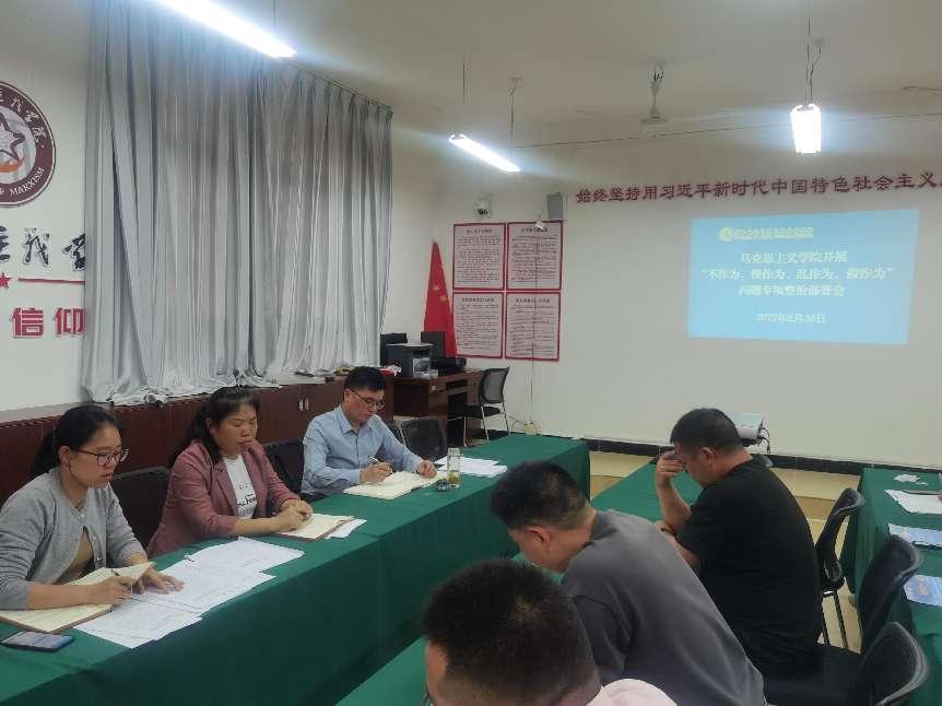 5月30日下午,我院召开“不作为、慢作为、乱作为、假作为”问题专项整治工作部署会,学院党总支书记谢菊花、学院行政负责人喻华及学院全体教师参会,会议由学院办公室副主任张莉主持。