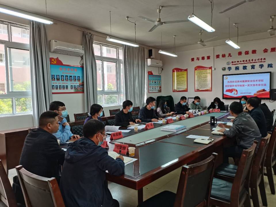 5月16日下午,贵州健康职业学院组织人事部党建办主任陈礼胜及学院11个支部党建人员一行到铜仁幼儿师范高等专科学校学前一支部开展考察交流活动。学前一支部书记、副院长代晓明,组织人事部组织科负责人柴如楠及支部委员参加考察及座谈会活动。