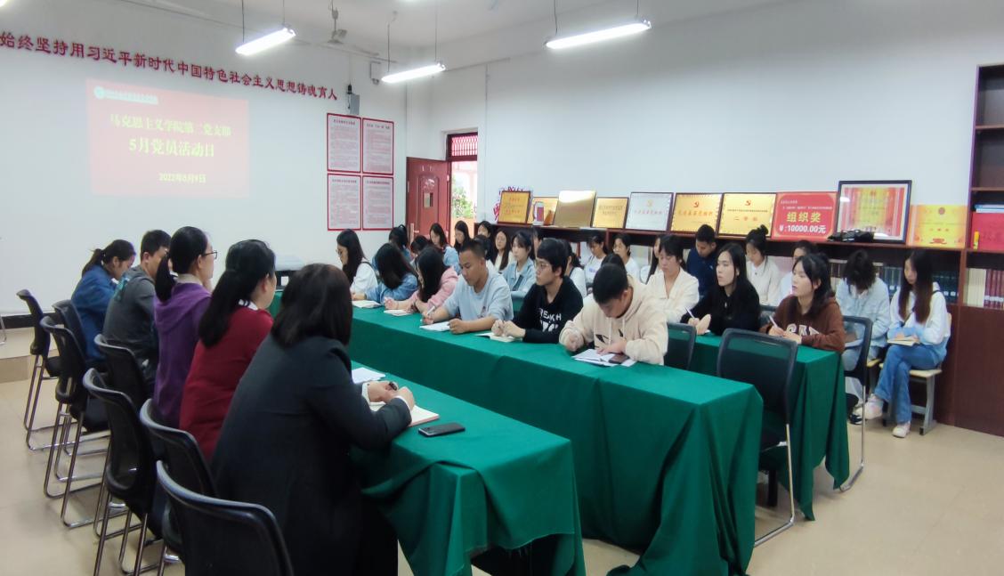 为进一步弘扬伟大五四爱国精神,5月9日,马克思主义学院第二党支部在党员活动室举行了五月主题党日活动。本次活动以“续五四精神·扬爱国情怀·做时代新人”为主题,党支部全体成员、发展对象和入党积极分子参加,支部书记张莉同志主持活动。
