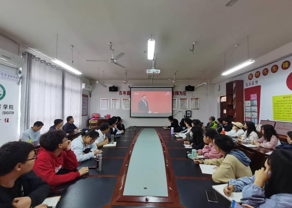 5月10日上午10时,庆祝中国共产主义青年团成立100周年大会在北京人民大会堂隆重举行,中共中央总书记、国家主席、中央军委主席习近平出席大会并发表重要讲话,初等教育学院师生在五栋二楼会议室收看大会直播。