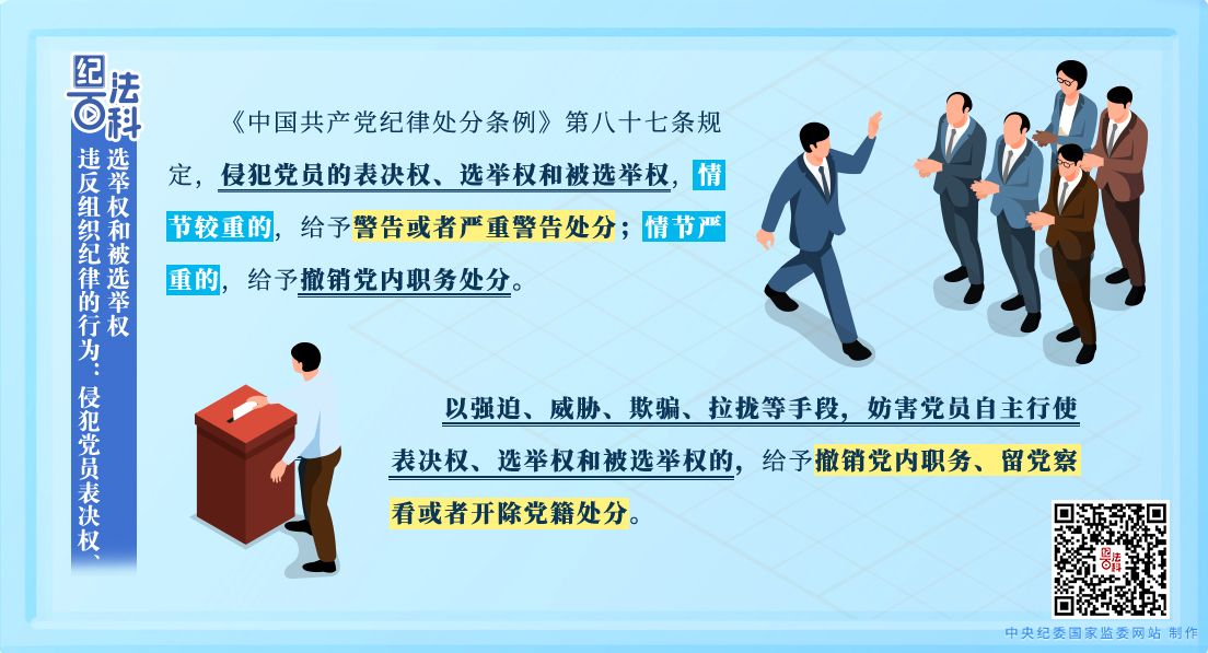 从各地纪委监委通报的典型案例看,一些党员干部和公职人员通过各种手段侵犯党员的表决权、选举权和被选举权,均受到严肃处理。