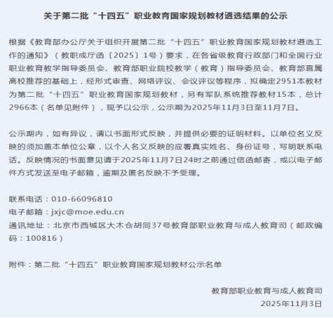 近日,教育部公布了第二批“十四五”职业教育国家规划教材书目名单,我校教师主持编写的两部教材荣耀入选,标志着我校在教材建设与教育教学改革领域取得了新的重要突破。