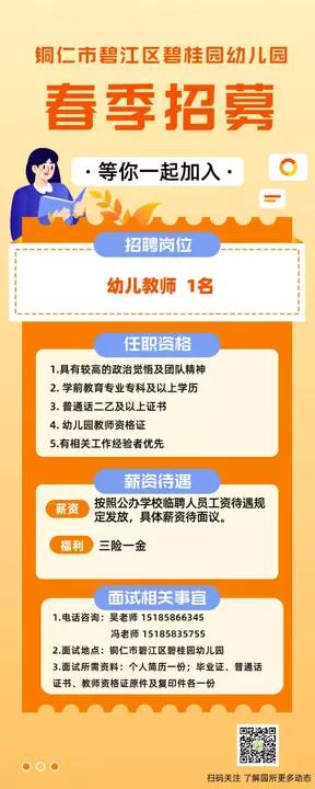 铜仁市碧江区碧桂园幼儿园招聘信息