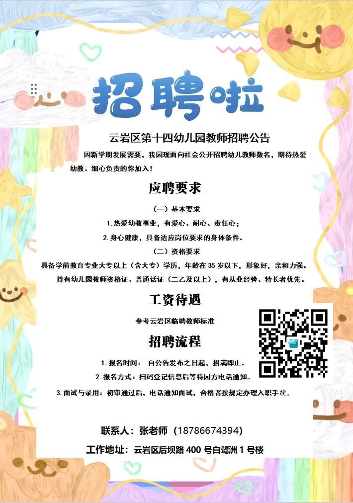 贵阳市云岩区第十四幼儿园教师招聘公告