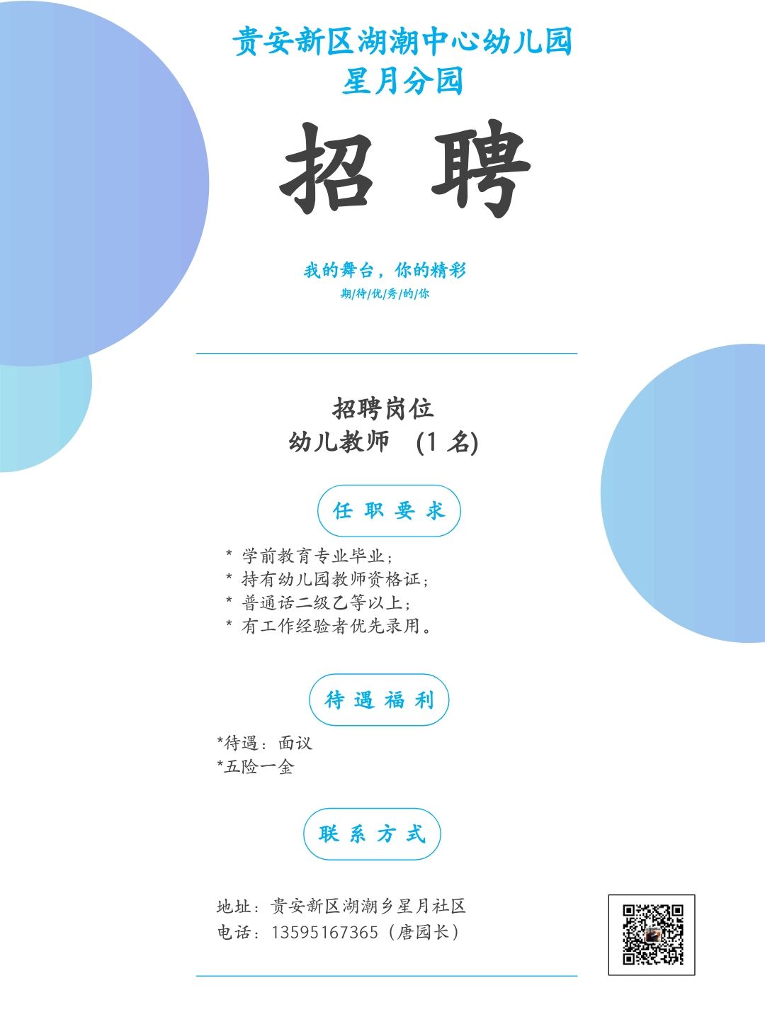 贵安新区湖潮中心幼儿园星月分园招聘信息