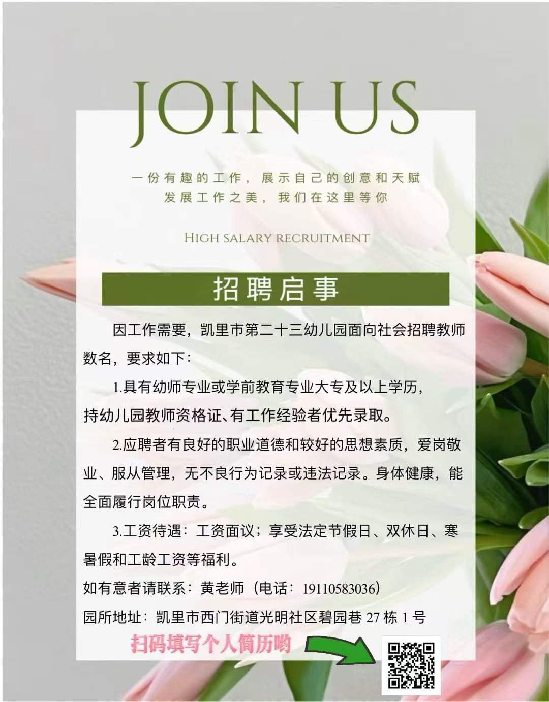 黔东南州凯里市第二十三幼儿园招聘启事