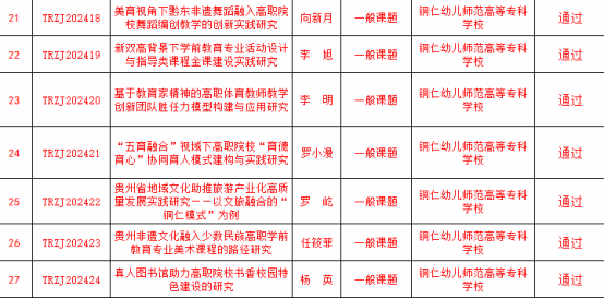 其中,受市教育局委托,由我校承担的2024年度铜仁市职业教育重大招标课题《高水平产教融合赋能铜仁职业教育高质量发展路径研究》,高质量完成相关研究任务,顺利结项。其他7项为市级职业教育科研项目一般课题。