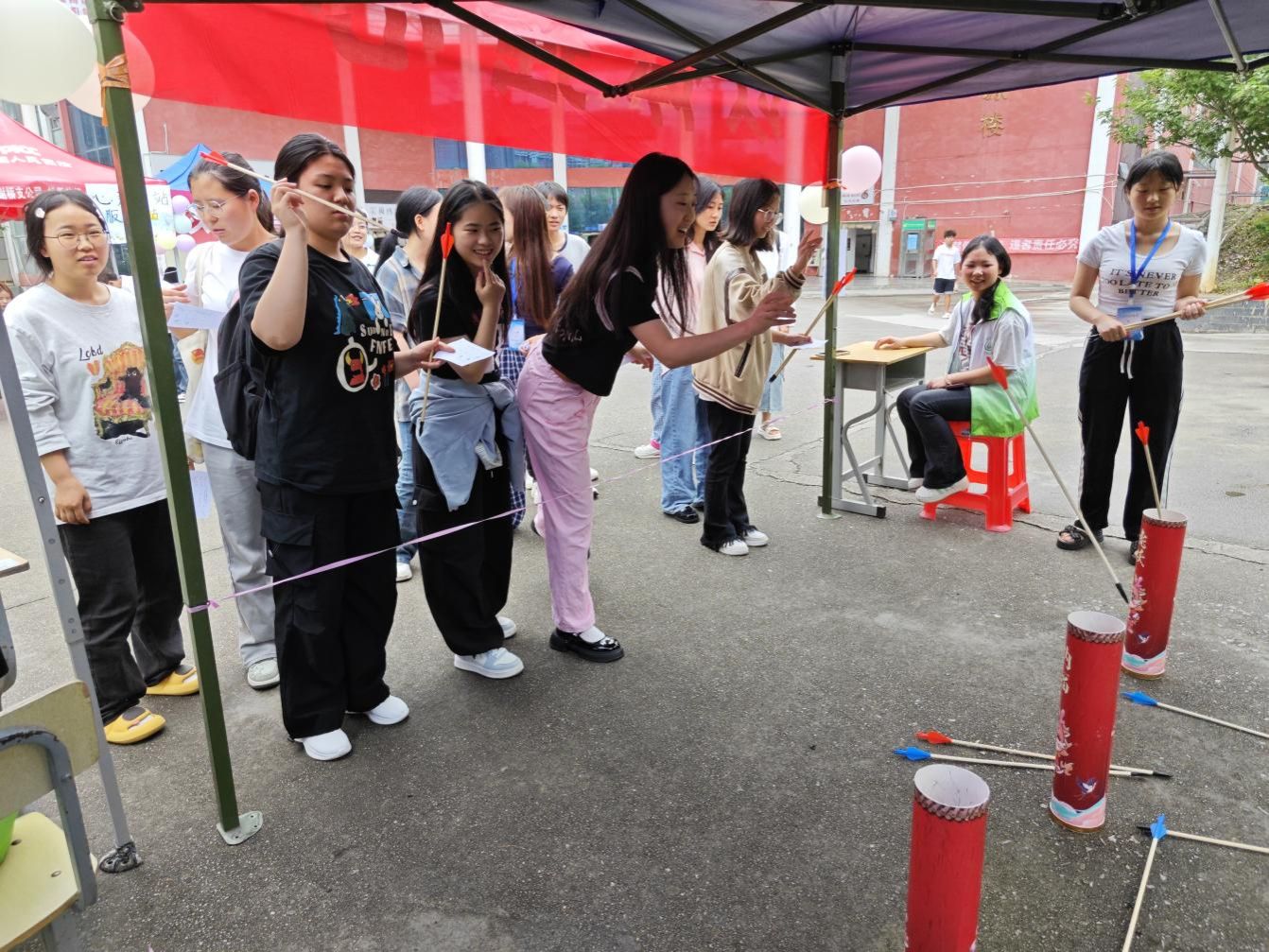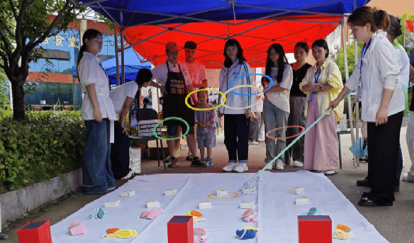 今年的活动采用集奖章兑换“幸运环”套圈获取奖品,学生每参加一项活动可集一枚奖章,两枚奖章可以兑换一个“幸运环”。既让参与过程充满期待感,又让他们在游戏中体会到“努力终有收获”的心理健康理念。同学们手持“幸运环”,眼神专注地瞄准心仪的水杯、毛巾等小奖品。每当套中目标,围观人群便爆发出阵阵欢呼,此起彼伏的笑声与掌声交织,将游园会的热烈氛围推向最高潮。