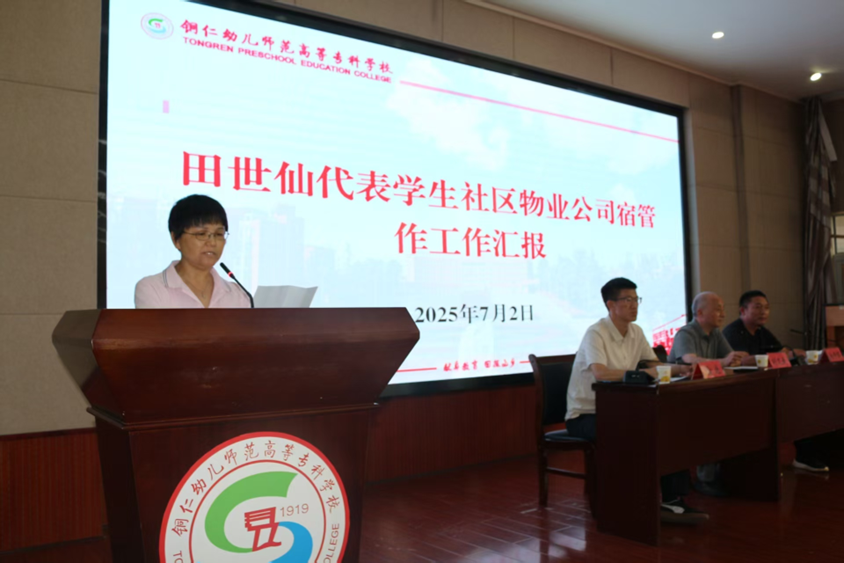 7月2日,铜仁幼儿师专“一站式”学生社区2024-2025学年度工作总结暨表彰大会在艺馨楼会议室举行。党委学生工作部部长刘文武、副部长杨秀军出席,会议由学生发展与指导中心主任徐进主持,心理健康教育与咨询中心、易班发展中心老师、学生社区宿管员及学生发展中心、学生事务中心、易班发展中心、心灵驿站等学生干部队伍参加会议。