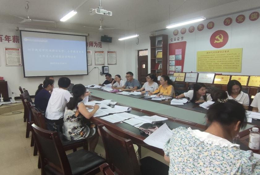 8月24日上午,本科教育学院在初等教育学院会议室联合召开2022年小学教育专业、汉语言文学专业的专升本人才培养方案研讨会。科研处负责人、本科教育学院执行院长包兵兵教授,初等教育学院院长杨胜茂副教授及相关专业教师参加研讨会。...