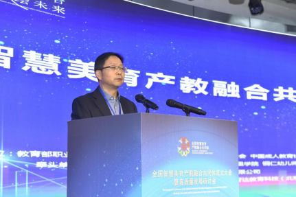 教育部职业院校文化素质教育指导委员会美育专门委员会主任委员、中国成人教育协会美育专业委员会理事长郭青春教授通过线上方式致辞。她高度评价了共同体成立的时代意义,认为这是将“智慧美育”与“产教融合”两大命题相结合的应势而为之举,体现了牵头单位铜仁幼专的前瞻视野与责任担当。她期待共同体能成为理念引领的高地、资源汇聚的平台、协同育人的摇篮和创新发展的引擎。