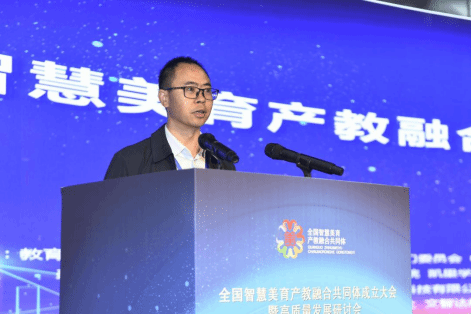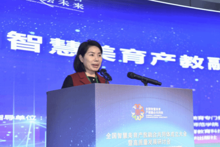 重庆智慧美育教育科技有限公司董事长唐小慧作为企业代表致辞。她分享了公司在智慧美育评价与实践领域的探索,特别是与铜仁幼专合作研发高职院校数字化美育评价平台的成功经验,并表示企业将深度参与共同体建设,助力美育成果转化与产业应用。