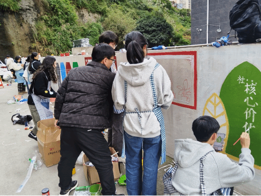 活动前期,师生团队与社区进行了充分沟通,紧密结合社区环境特点与文明城市创建的核心要求,精心策划了以“文明礼仪”“和谐邻里”“绿色环保”“社会主义核心价值观”等为主题的墙绘设计方案,力求艺术性与教育性相统一。