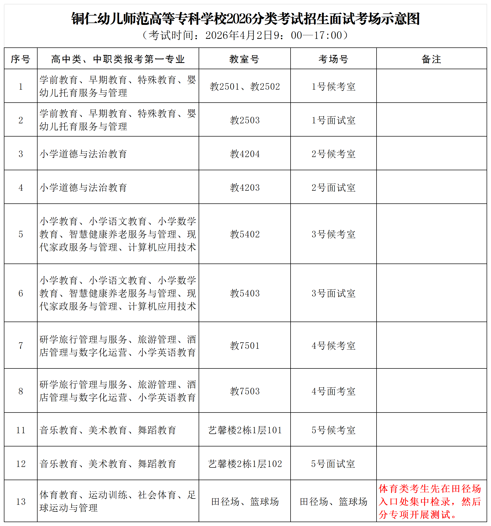 3.中职类考生如非一志愿中有艺术类、体育类专业的志愿,参加完普通类专业测试后向招生就业处报告,由老师带领参加艺术类、体育类专业的测试,如不参加的考生将视为无效志愿。