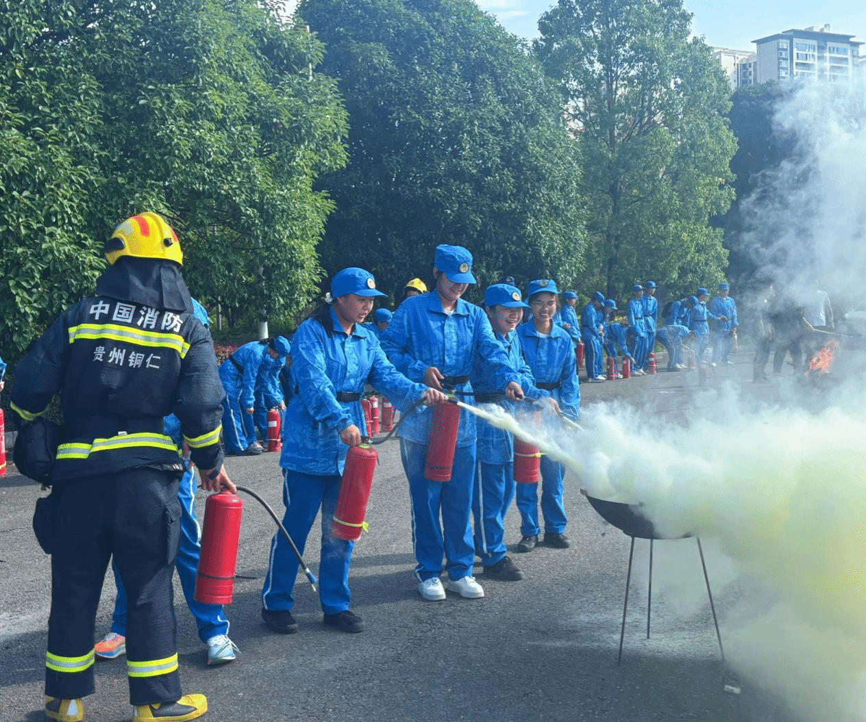 在全体师生安全疏散集结后,碧江区消防救援大队铜兴大道特勤站的指战员为同学们带来了一场内容充实、重点突出的消防安全知识讲解。专业人员结合校园生活实际,详细介绍了日常防火注意事项、初期火灾的扑救原则以及不同种类灭火器的正确使用方法与操作步骤,并进行了现场实操演示。在专业人员的悉心指导下,多名新生代表踊跃上前,亲身体验了使用干粉灭火器扑灭模拟初起火灾的过程,有效掌握了基本的灭火技能。