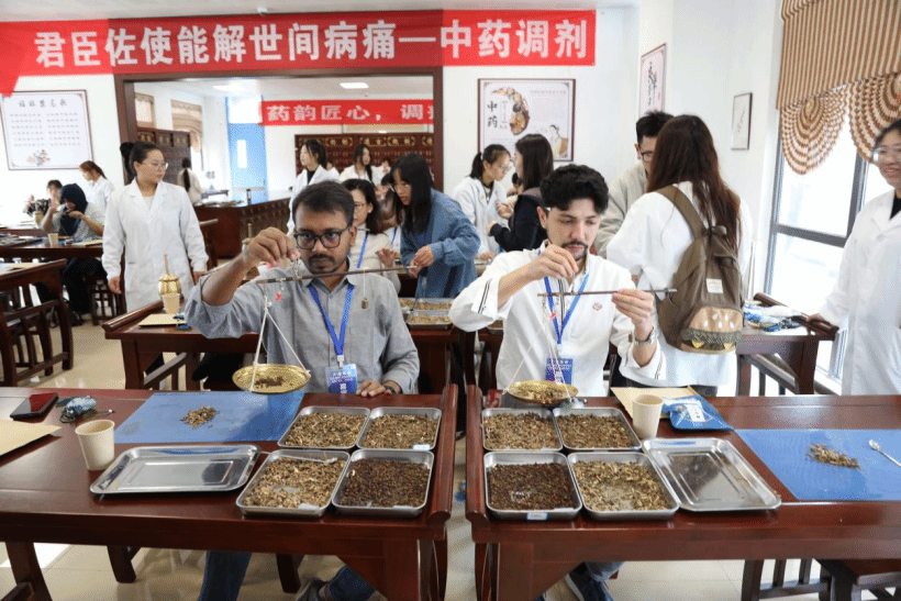 活动将中医文化与跨境电商教学融入“中文+”体验课程,让国际青年在中文语境里学技能、长见识。在贵州健康职业学院、铜仁职业技术大学开展的中医课堂上,大家听老师讲解中医原理,还体验了中医推拿和中药材加工;跨境电商课上,大家分组用中文讨论“怎么把贵州苗药、铜仁抹茶卖到国外”,试着写推广方案,把“知识”变成了“能用的本领”。