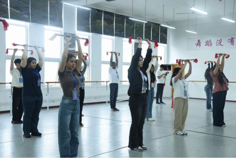 “跟着节奏踏步、转身,听到杆子碰撞的脆响,好像和土家族人一起过节!这种热闹的感觉,比我在课本里看到的‘少数民族文化’更真实,我现在终于懂为什么说‘文化要亲身体验’。”来自土库曼斯坦的AYNURA GENJIYEVA则对土家金钱杆舞念念不忘。