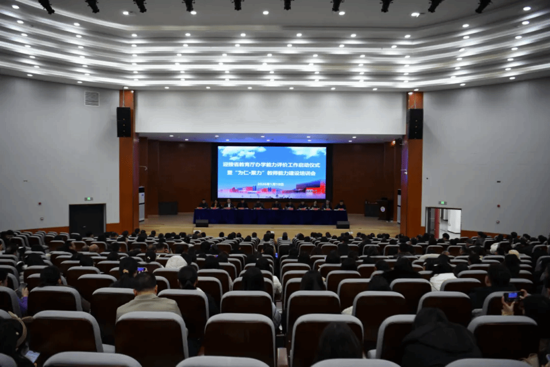 1月10日,我校举办省教育厅办学能力评价迎评工作启动仪式暨“为仁·聚力”教师能力建设培训会。校党委书记宋选文出席并讲话,校党委副书记、校长朱保贤主持,校党委班子成员及全体教职工参加。宋选文强调,办学能力评价既是“政治体检”,也是“能力大考”,全校要提高站位、锤炼作风、统筹协调,以评促建助推学校“1531”战略落地。朱保贤要求全体教职工树立主人翁意识,坚持“以评促建、以评促改”,为学校高质量转型发展赋能。