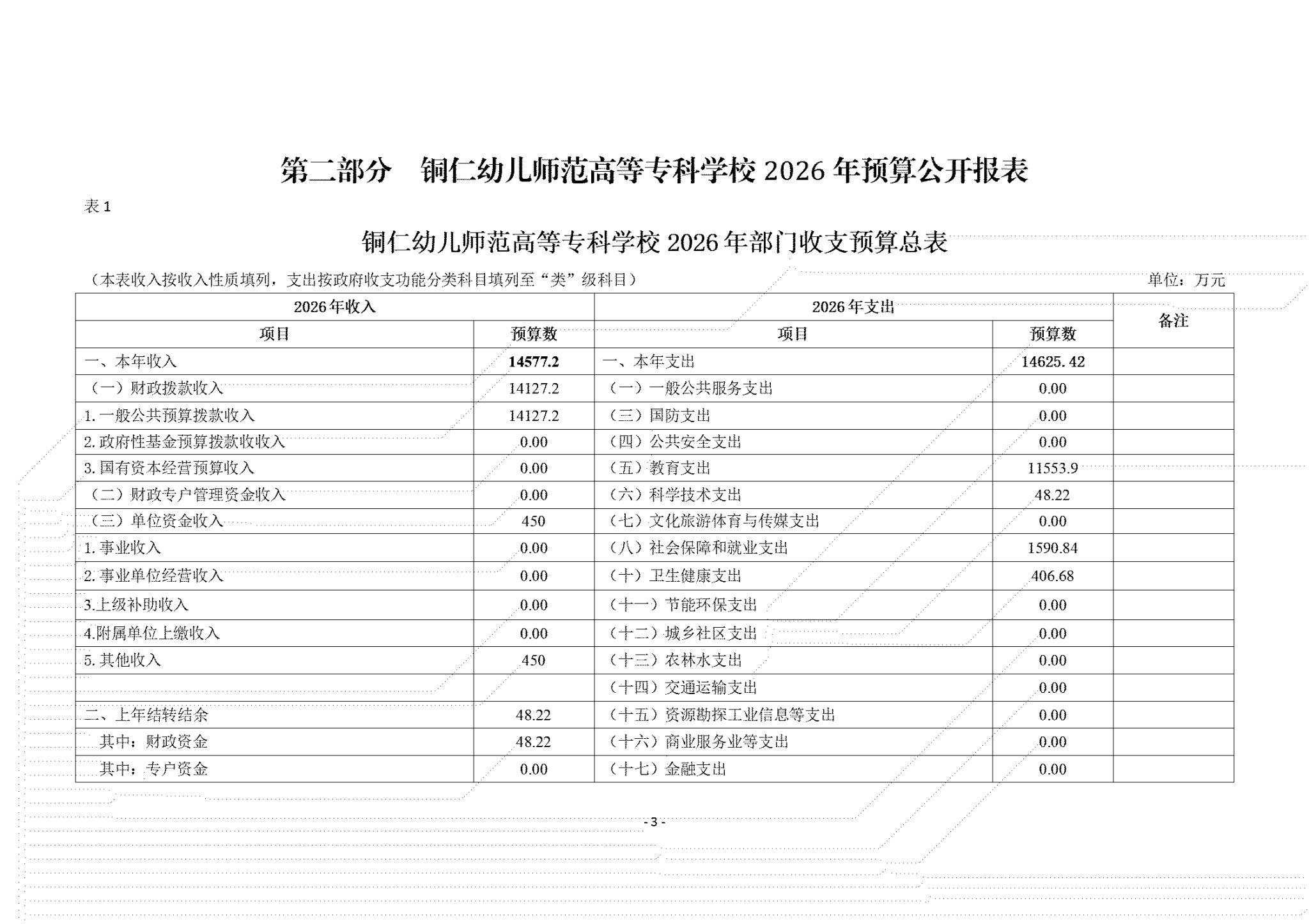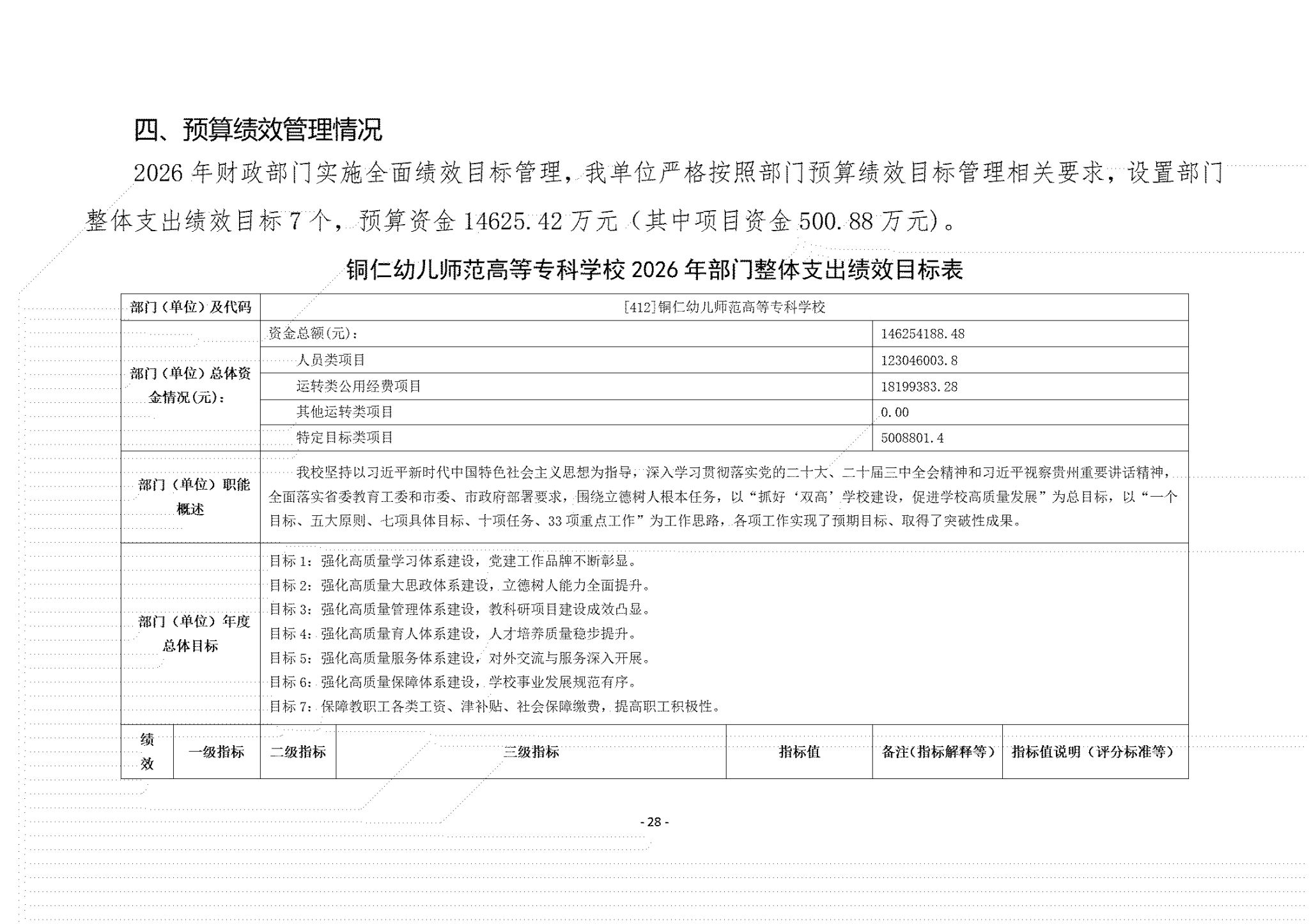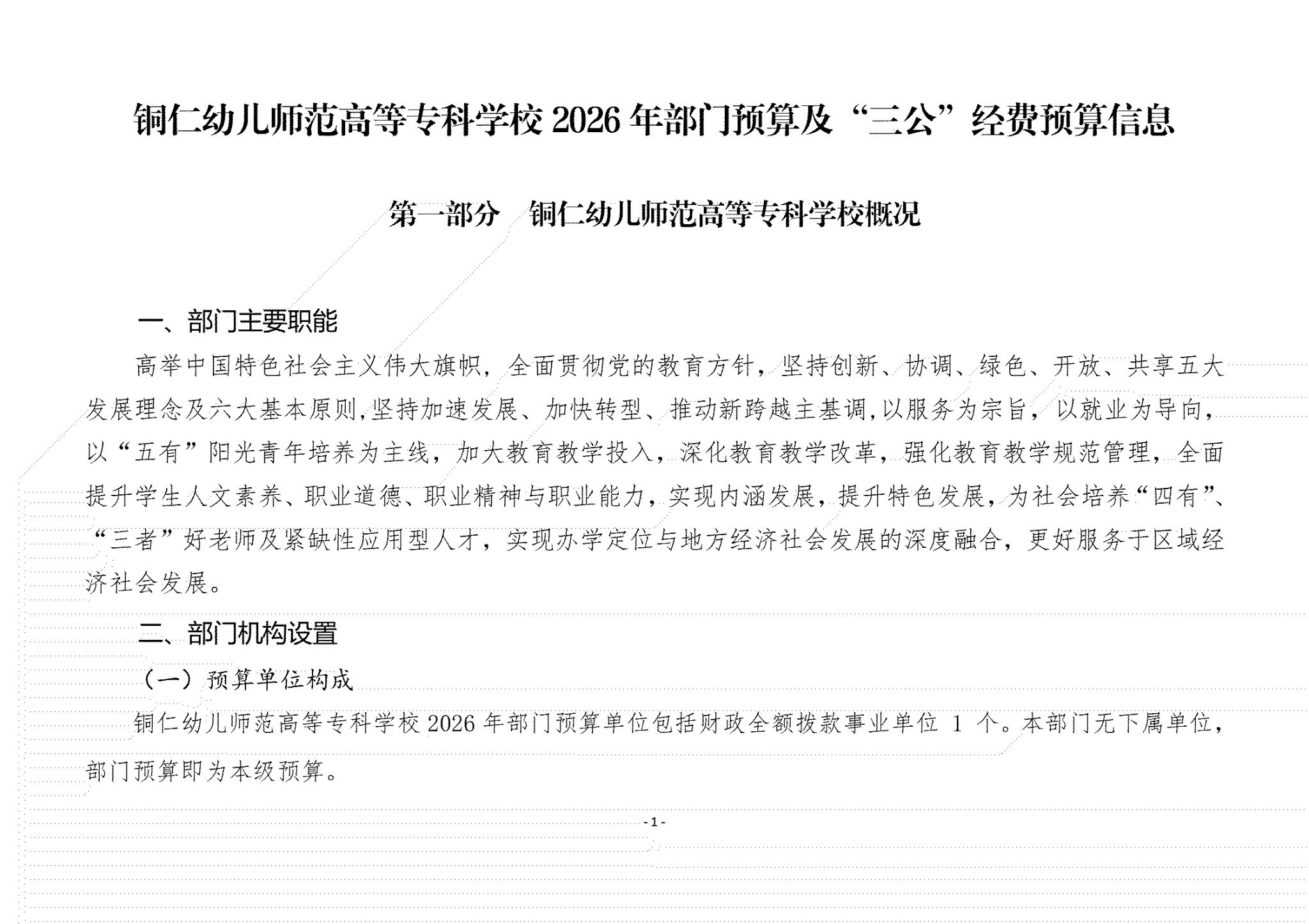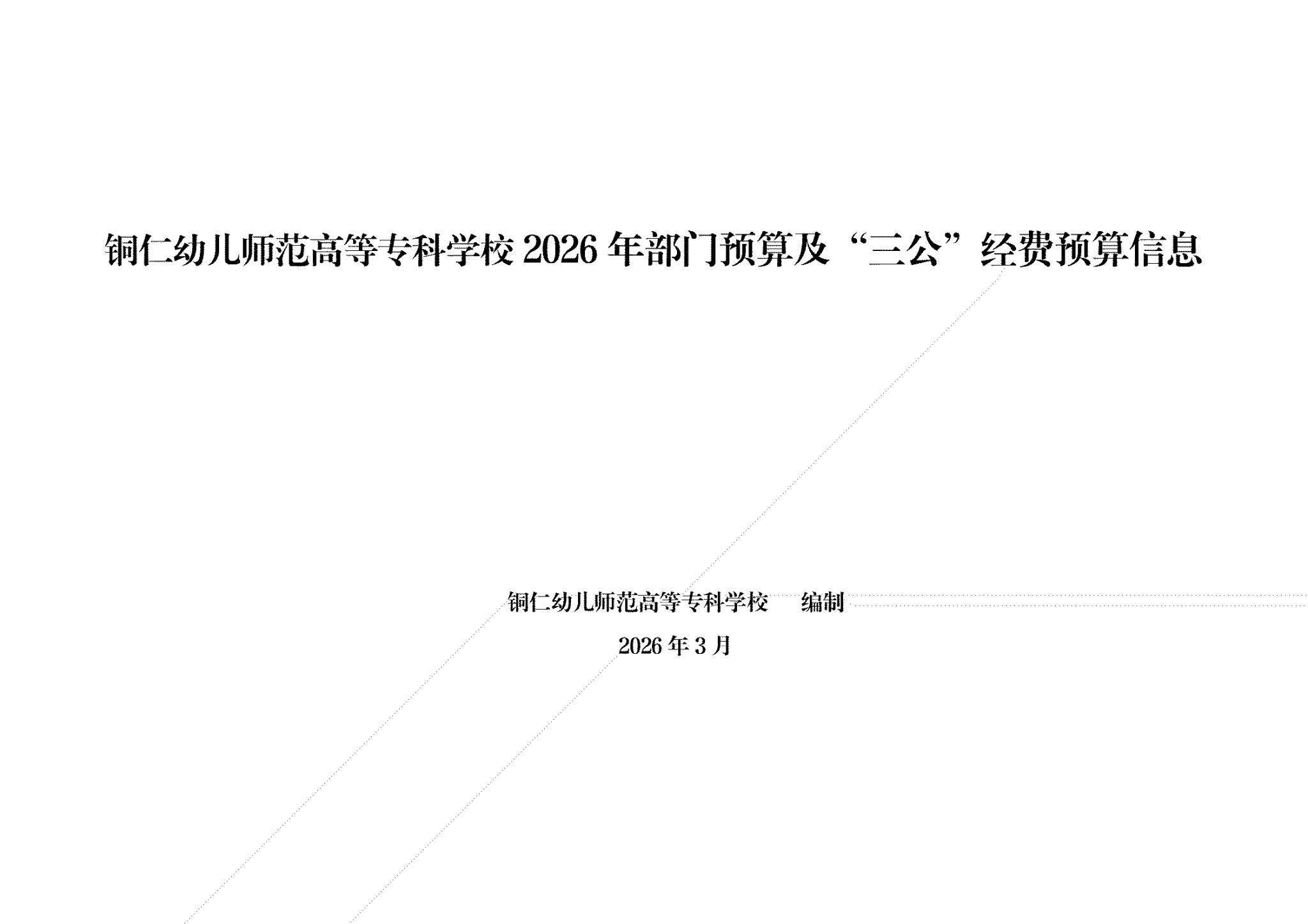 铜仁幼儿师范高等专科学校2026年部门预算及“三公”经费预算报告