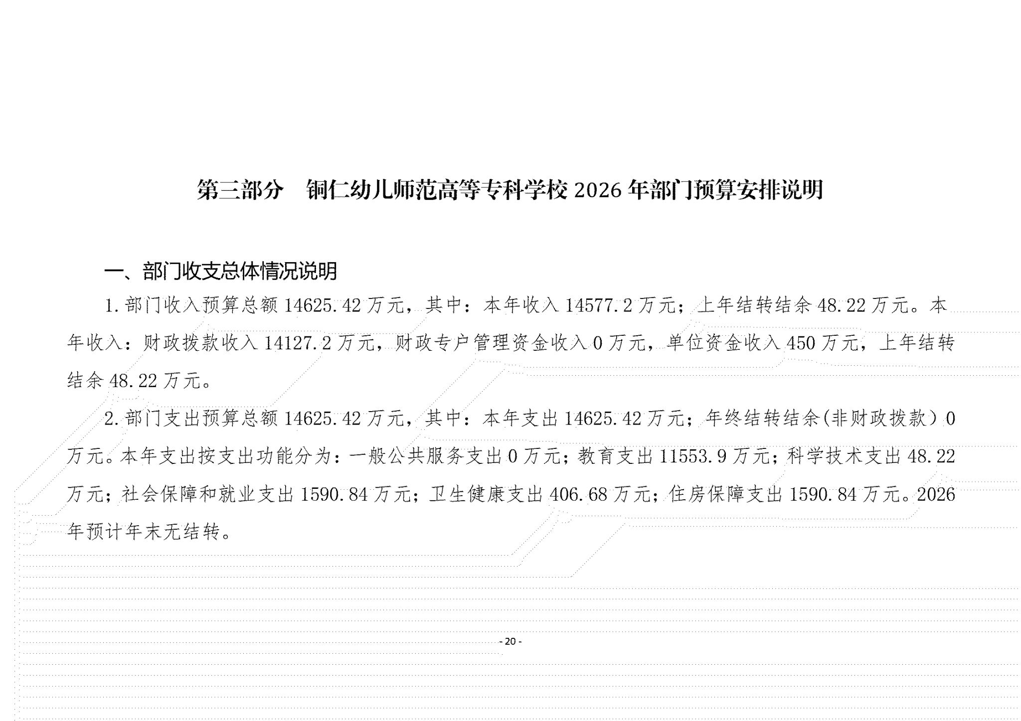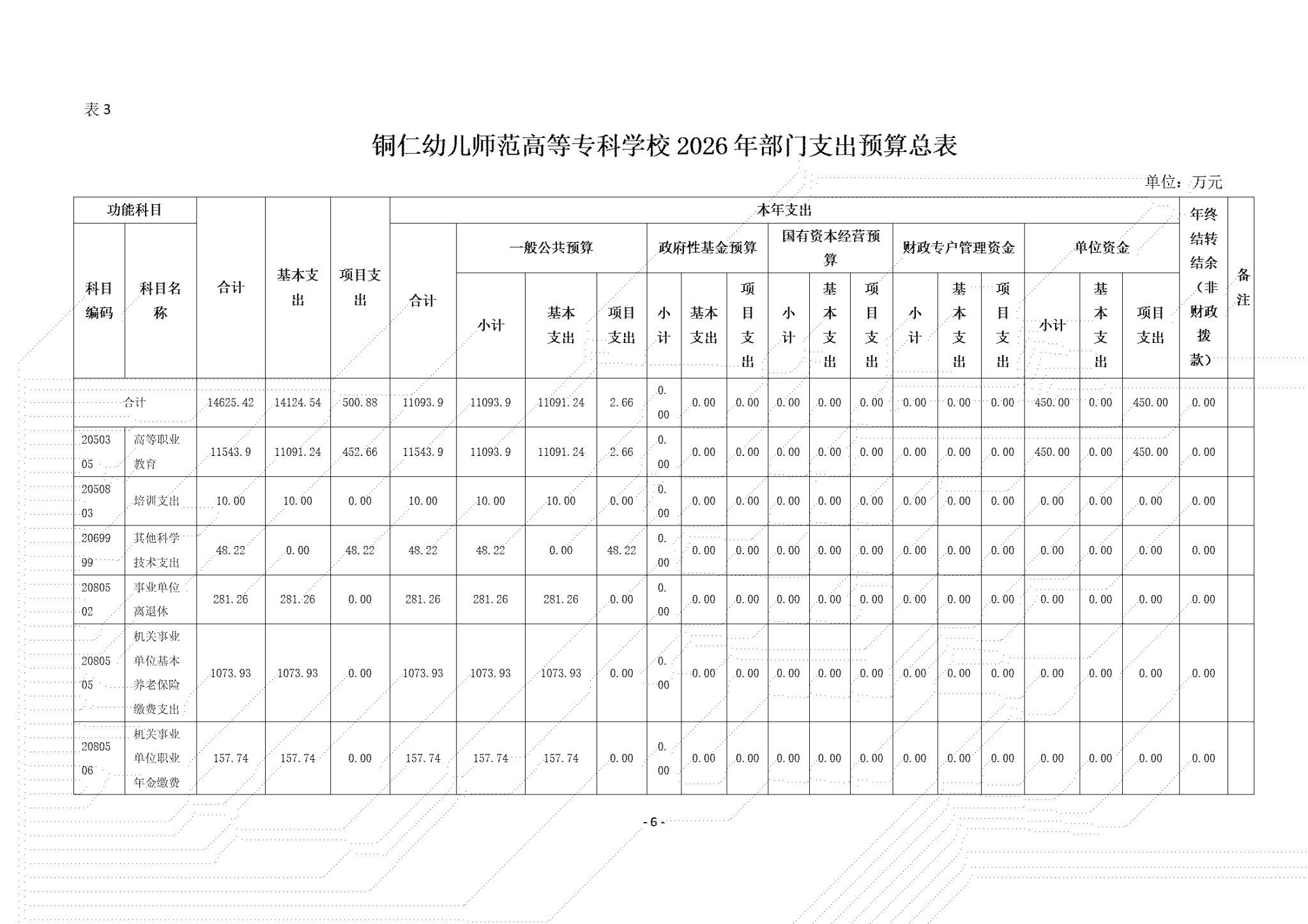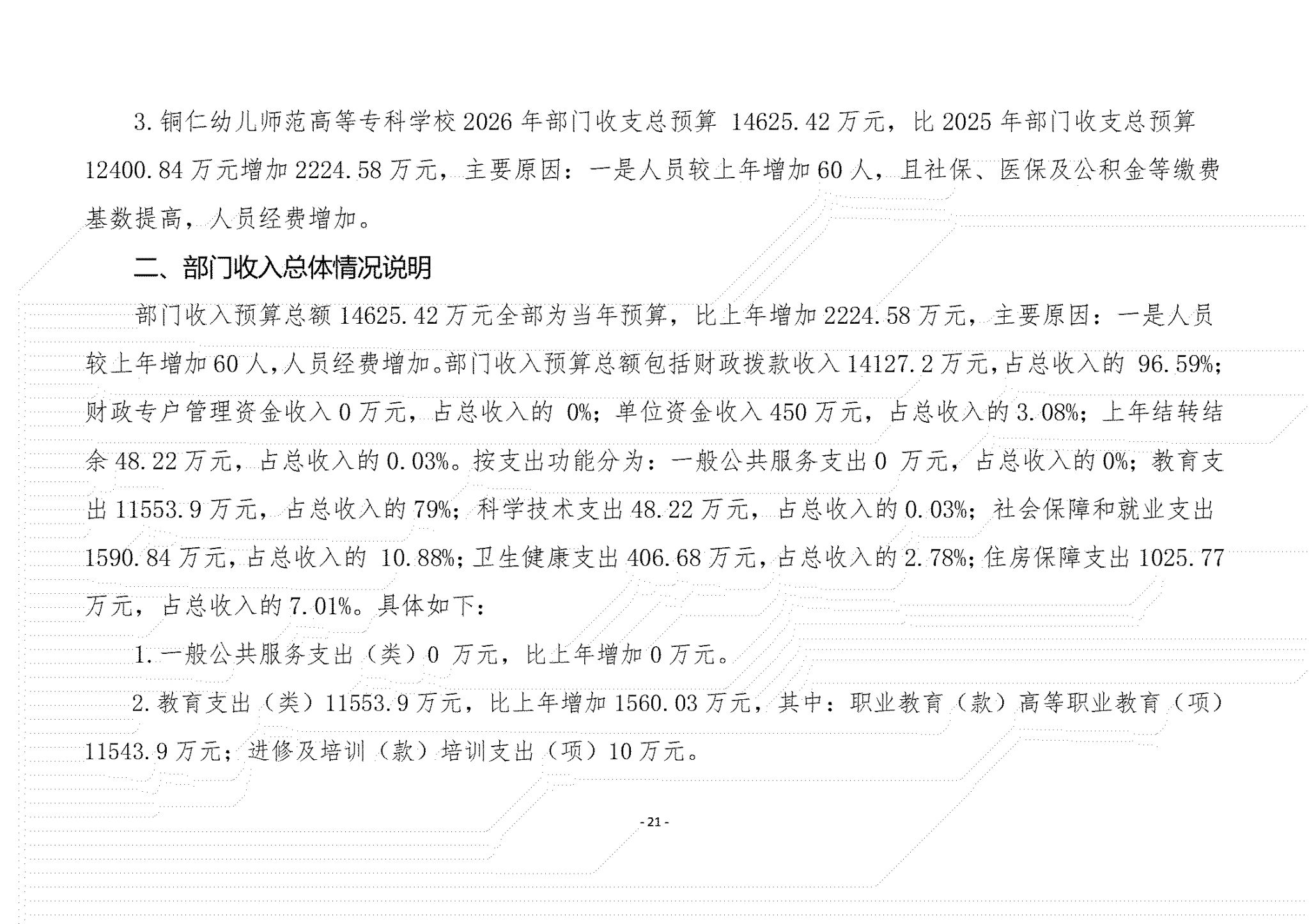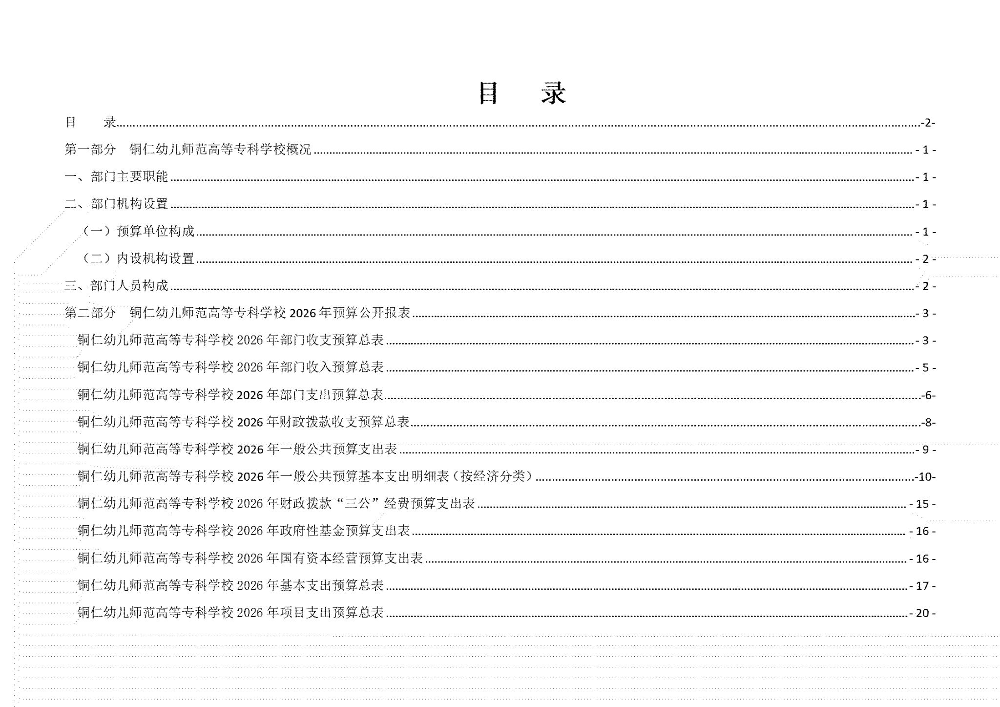 铜仁幼儿师范高等专科学校2026年部门预算及“三公”经费预算报告