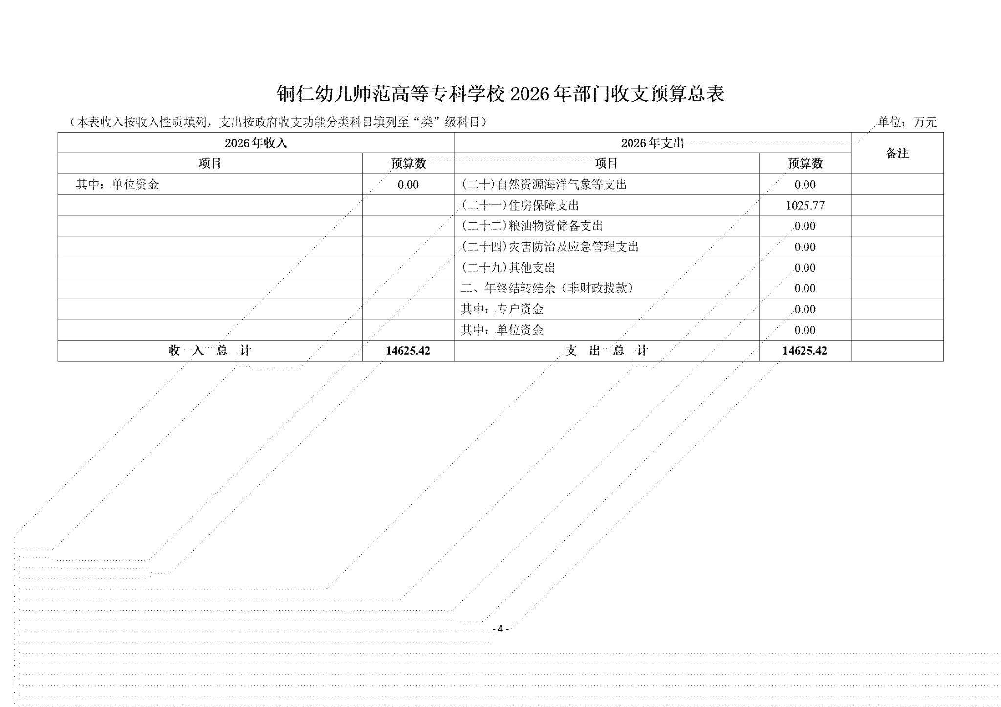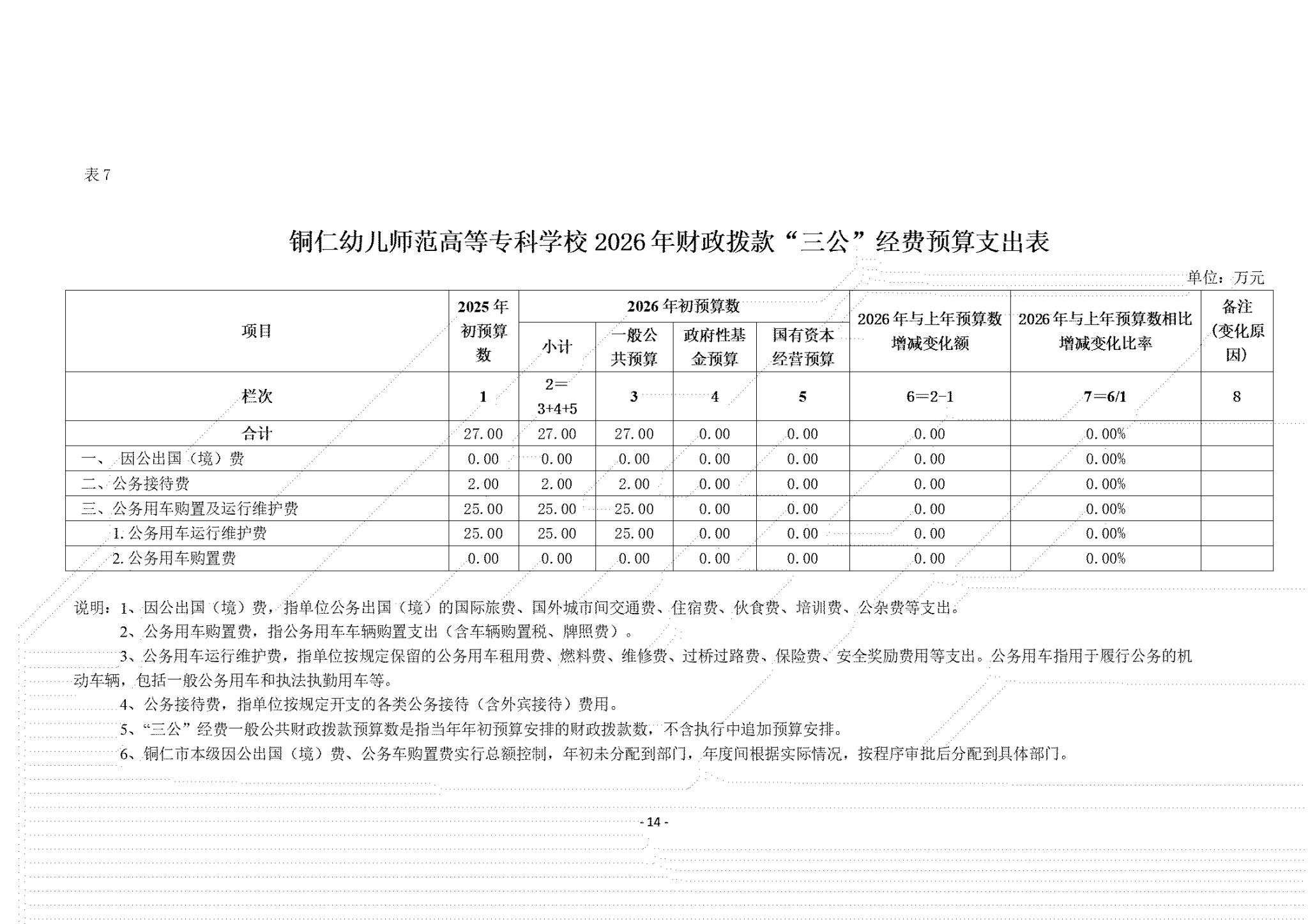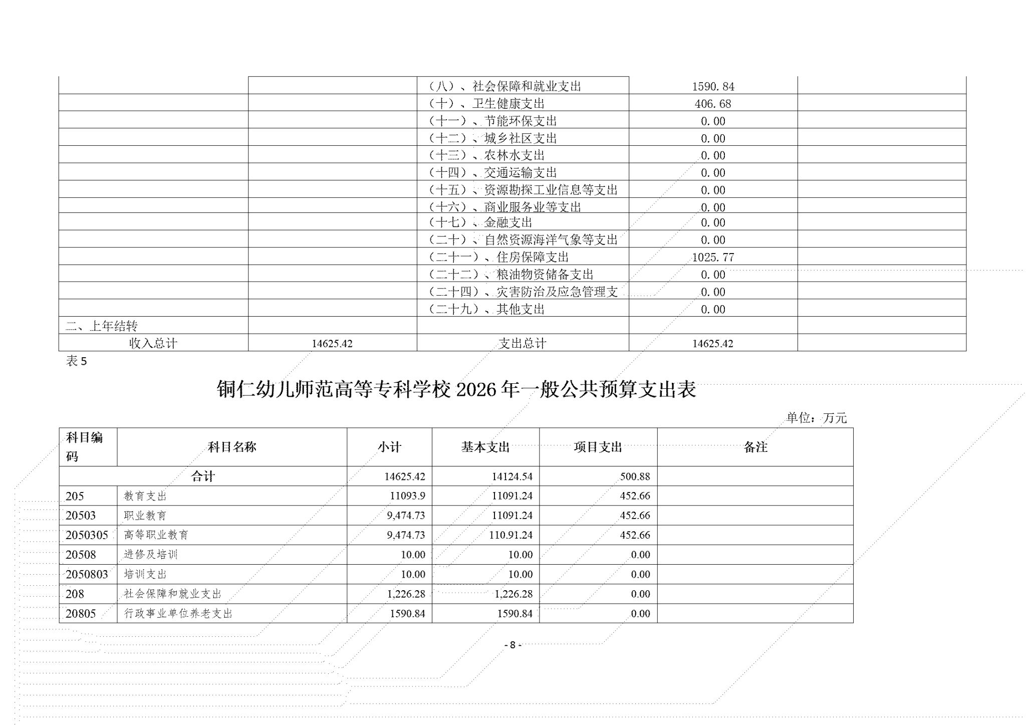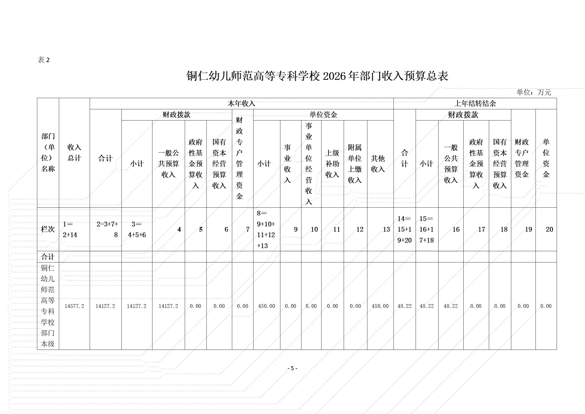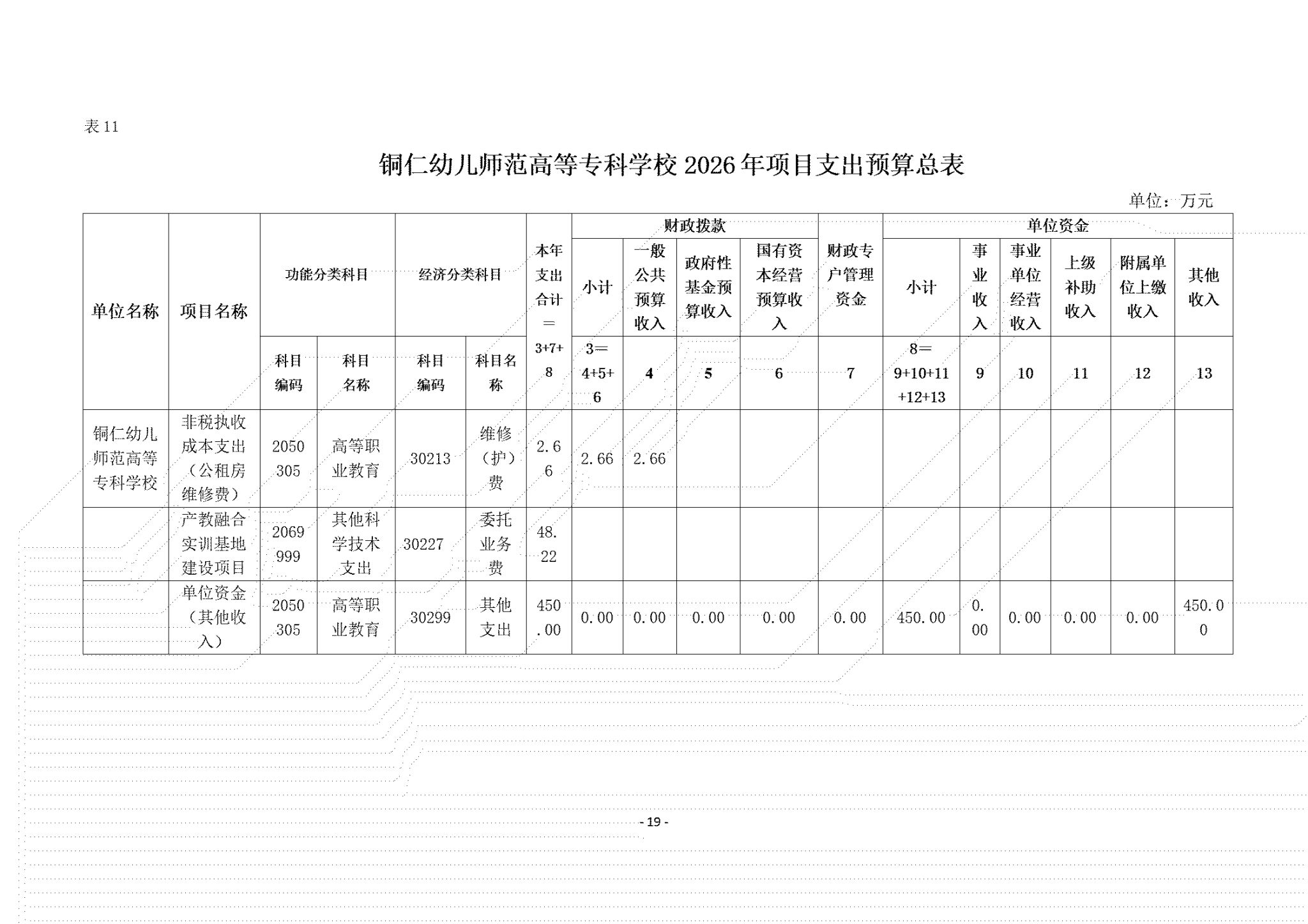 铜仁幼儿师范高等专科学校2026年部门预算及“三公”经费预算报告