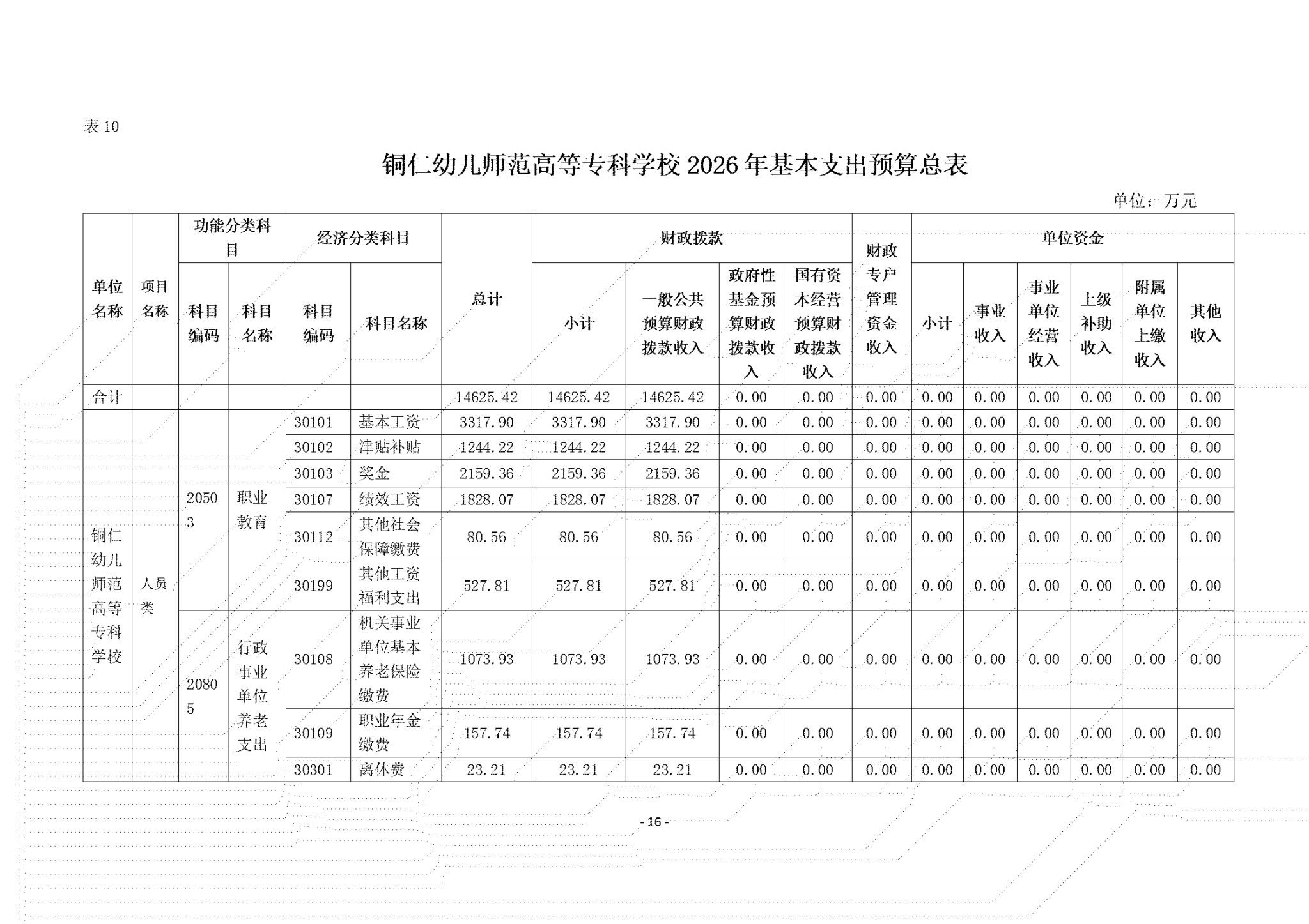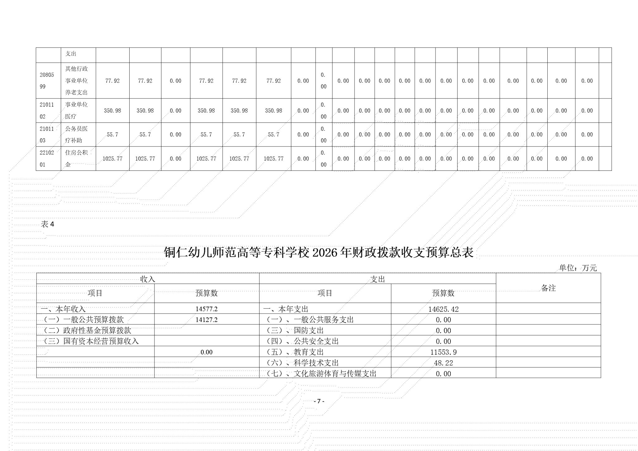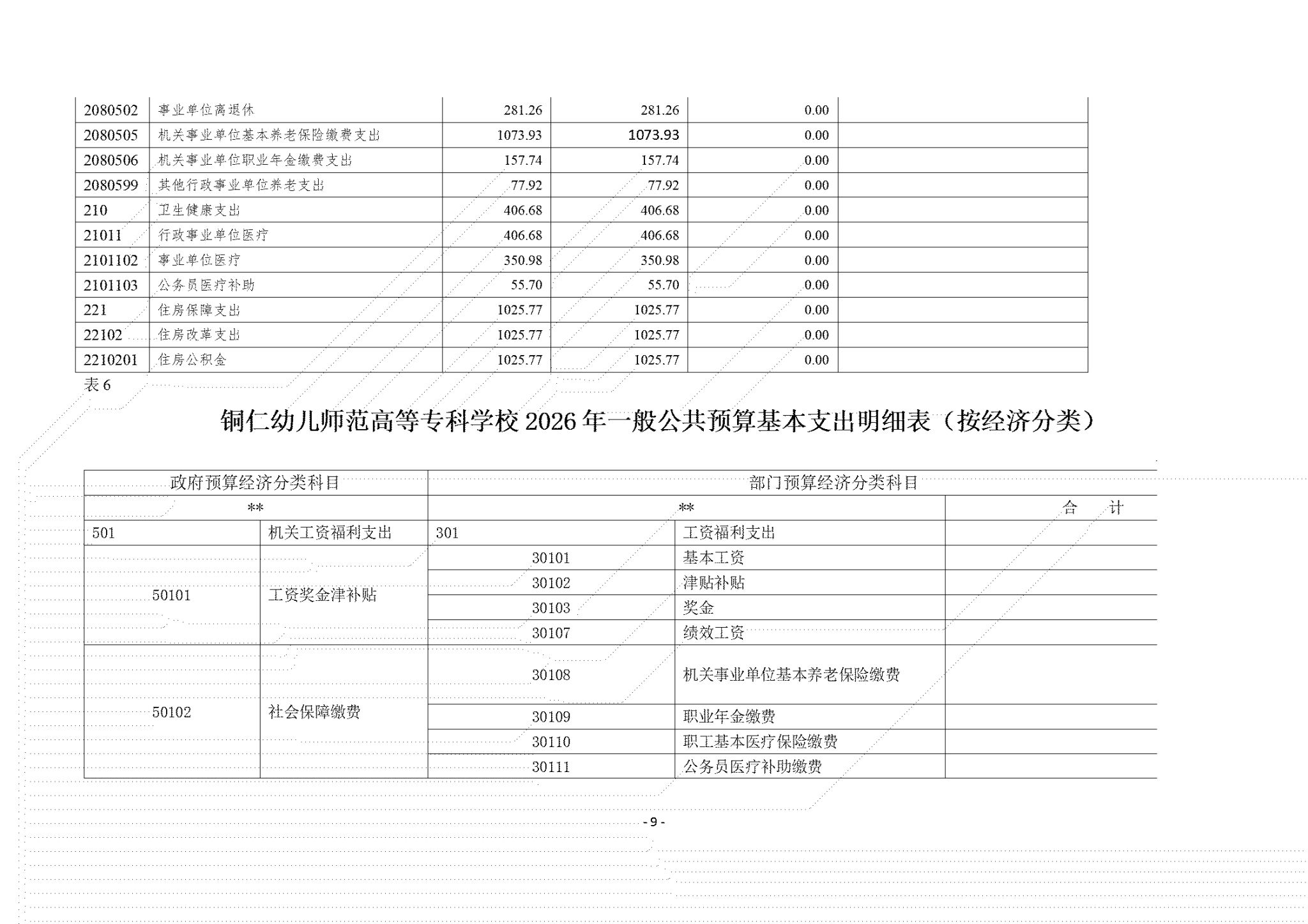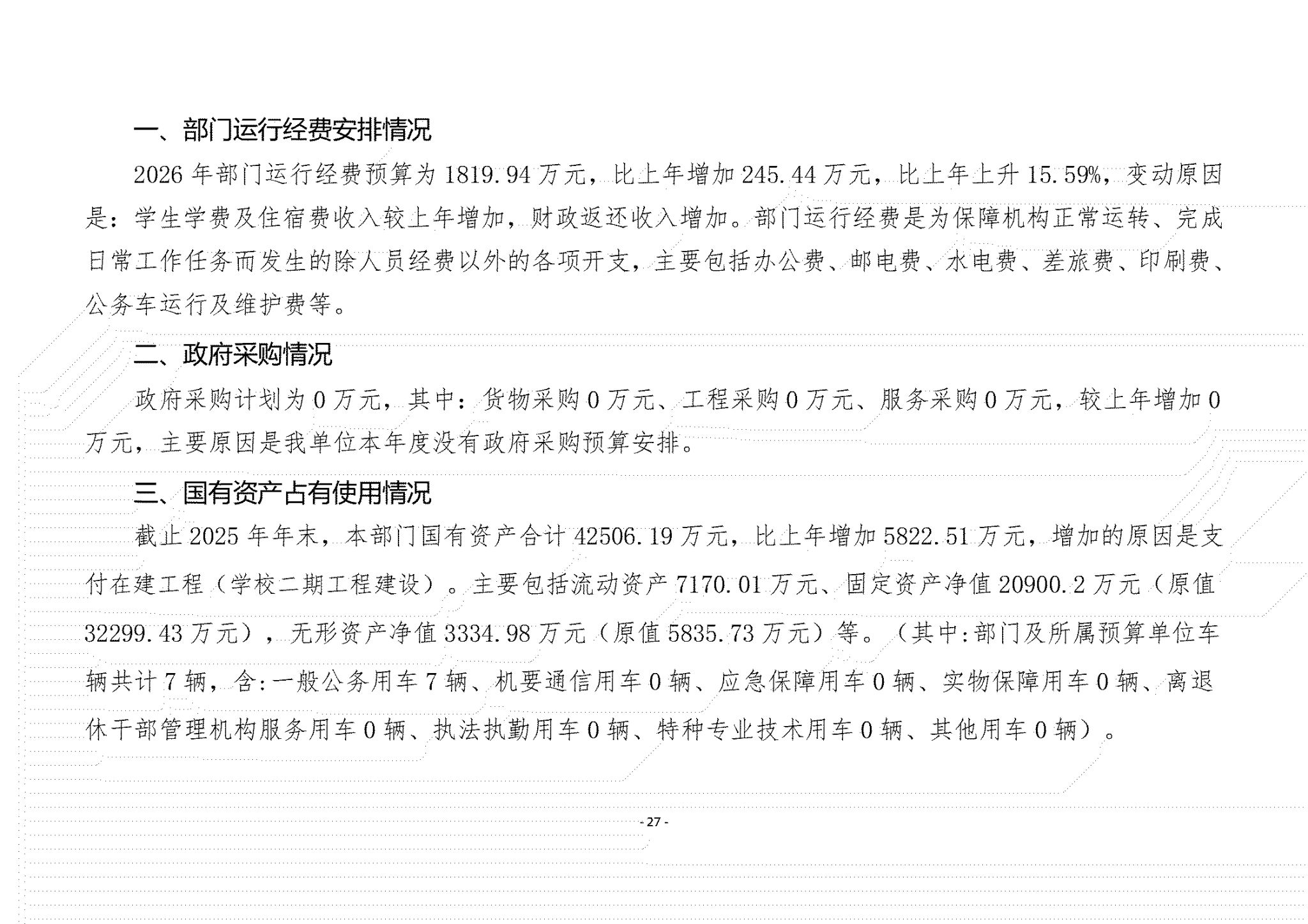 铜仁幼儿师范高等专科学校2026年部门预算及“三公”经费预算报告