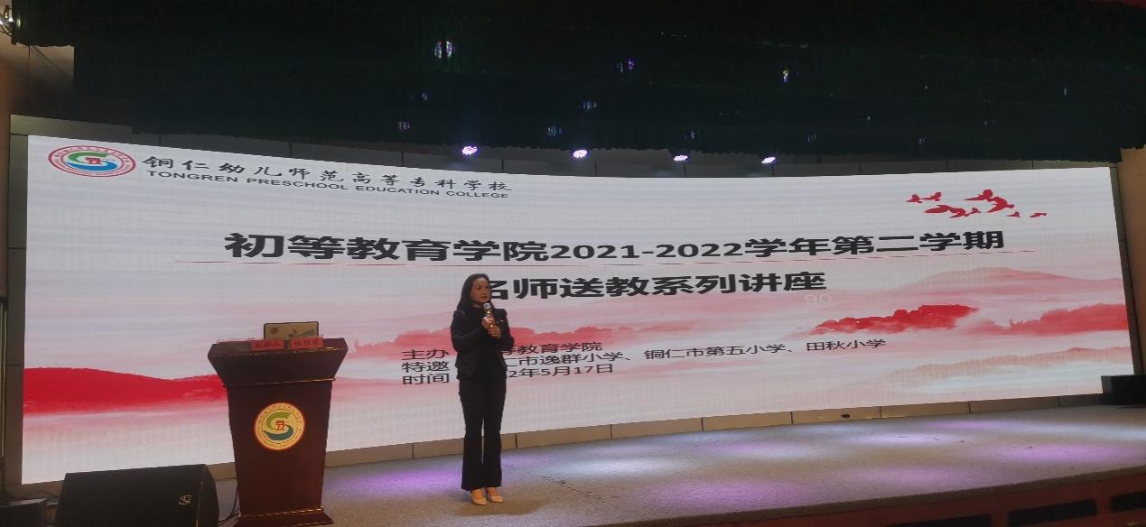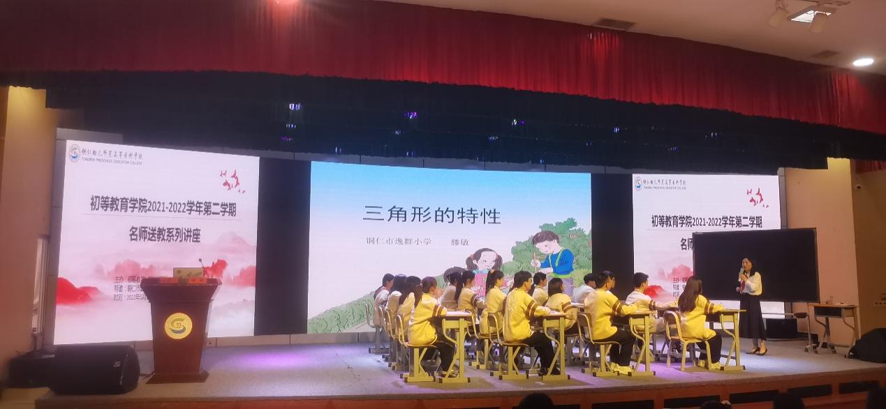 5月17日下午,我院邀请铜仁市第五小学党总支书记兼校长、“贵州省特级教师”、“贵州省小学名校长工作室主持人”杨丽蓉及铜仁市逸群小学副校长、小学数学高级教师、“铜仁市乌江园丁”滕敏在学术报告厅分别开展《新课标下教师如何备好课》专题讲座和《三角形的特性》教学观摩课。讲座由院长杨胜茂主持,学生科科长孙静和教务科黄丽娟老师及全院近400名学生到场聆听。