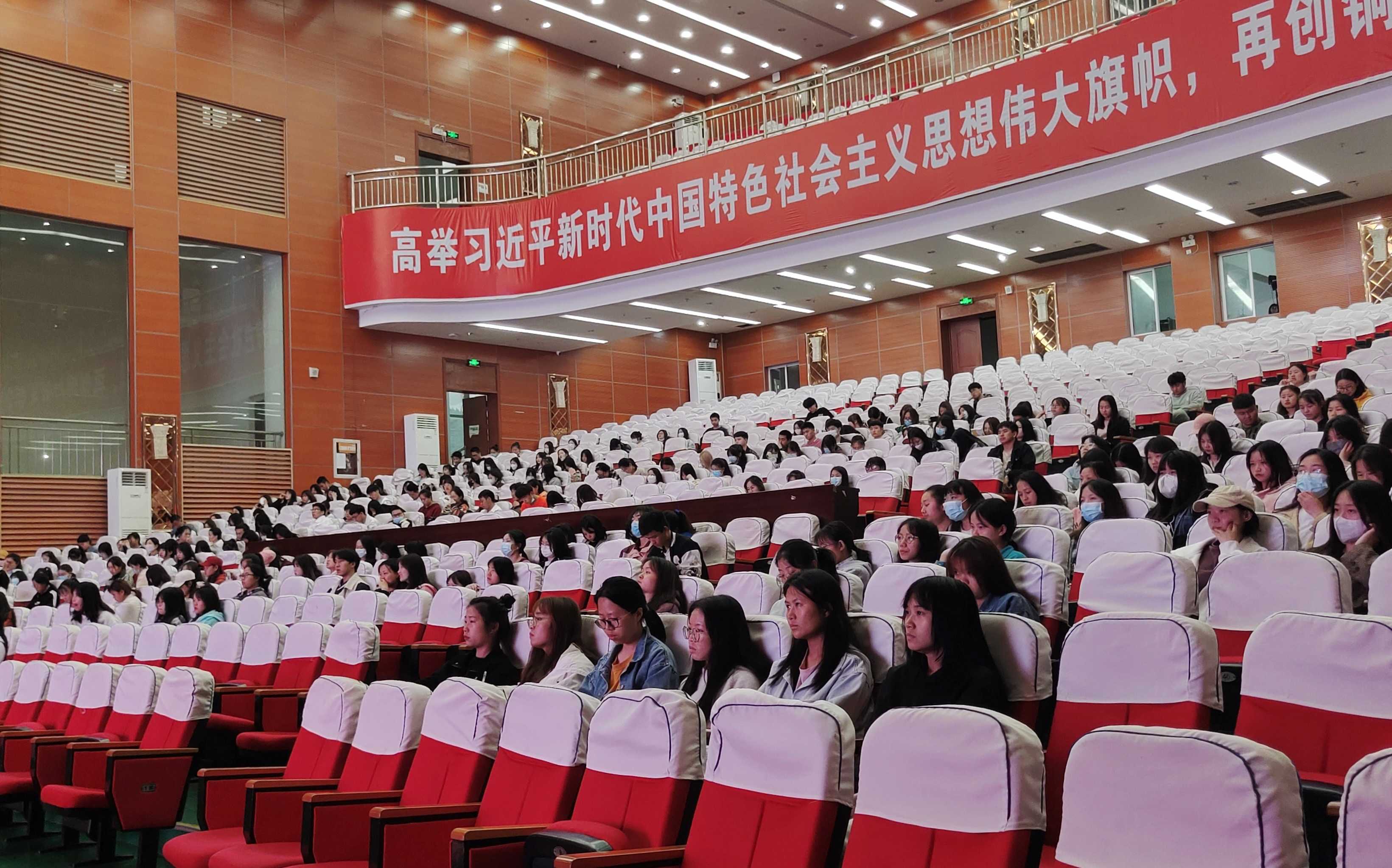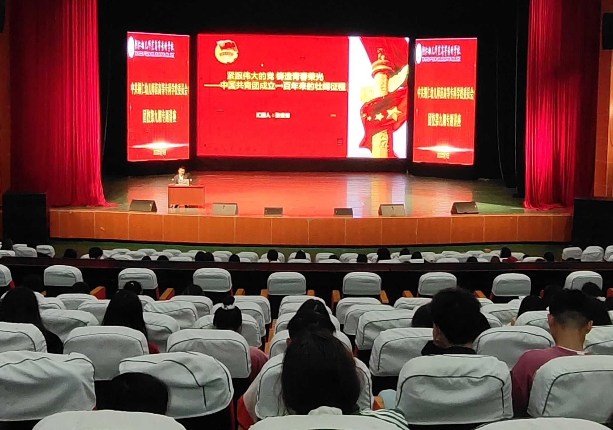 5月19日晚,党政办副主任张佳佳在大学生活动中心给团校第九期全体团员作《紧跟伟大的党 铸造青春荣光》专题讲座,全体学员500余人参加,讲座由校团委办公室主任刘圣平主持。