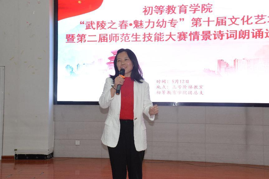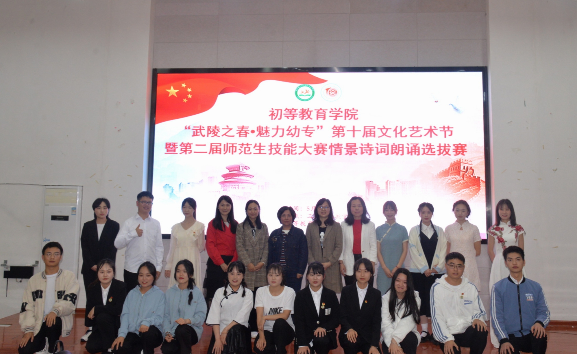 为进一步展现我院学生的青春风采和精神风貌,提升学生语言能力和艺术表现力,让学生在经典诵读过程中受到中华诗词潜移默化的教育和影响,促进师范生专业技能发展,逐步达到“以文化人,以美育人”的目的。初等教育学院于2022年5月12日晚在三号阶梯教室举办了“武陵之春·魅力幼专”第十届文化艺术节暨第二届师范生技能大赛情景诗词朗诵选拔赛。