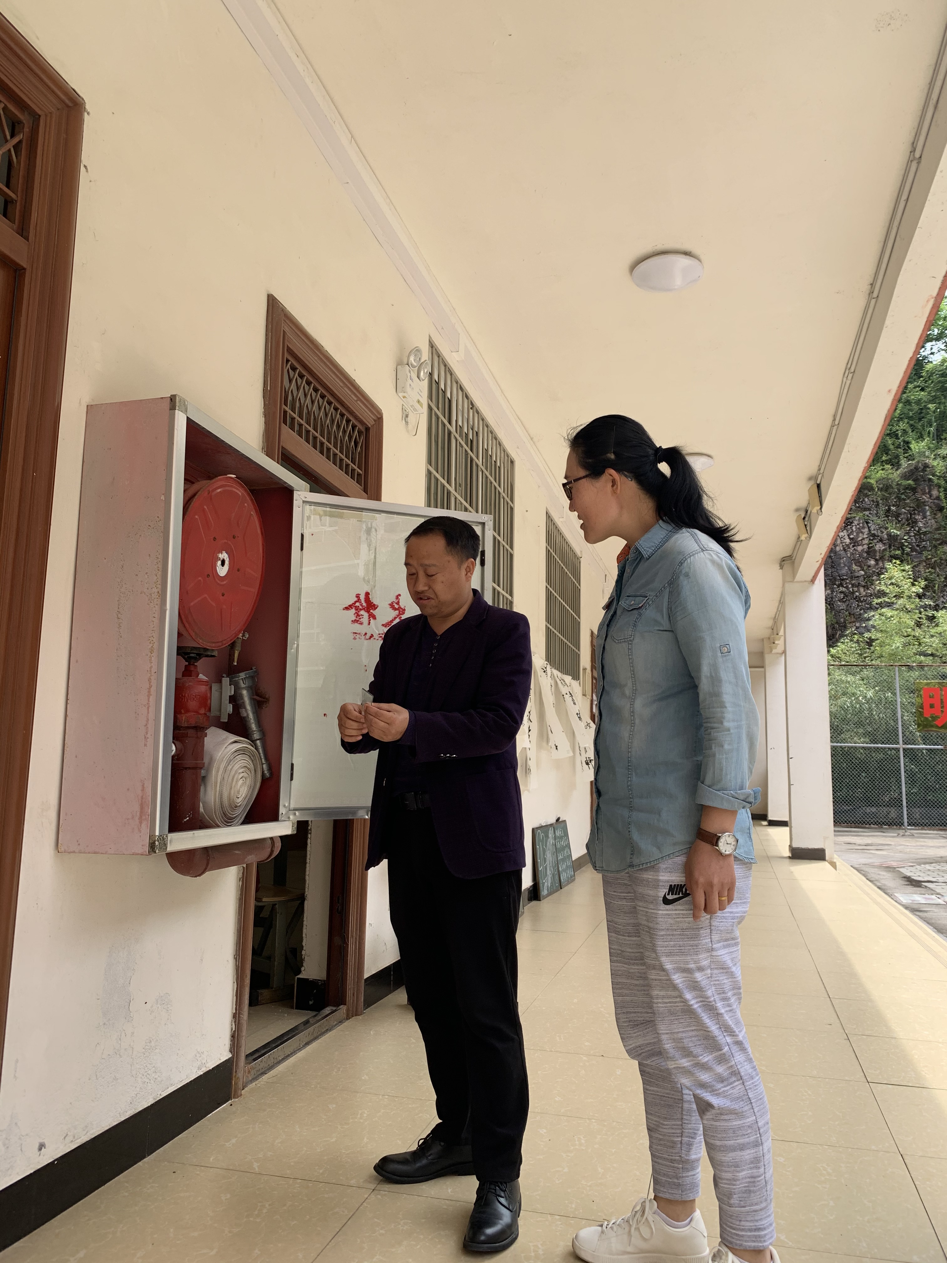杨胜茂亲自对教学楼各层消防设施、安保器材、以及灭火器消防栓是否完好及是否能正确使用等情况进行仔细检查,同时也进行了消防安全讲解。检查过程中,杨胜茂强调,教职工在平日的工作中,要严格做到人走电断,防电器自燃。