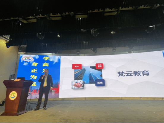 第二阶段由贵州梵云教育技能培训有限公司董事长石昌强开展就业宣讲,他强调,公司位于铜仁市大数据产业园,是一家专注于从事人才创业、就业、学历资格提升、留学深造、技能培训规划指导服务为一体化企业。石昌强通过PPT、宣传片等形式,详细介绍了公司的发展历程、业务板块、企业文化、薪酬福利、培训体系及职业晋升通道,加深了同学们对企业的认知。
