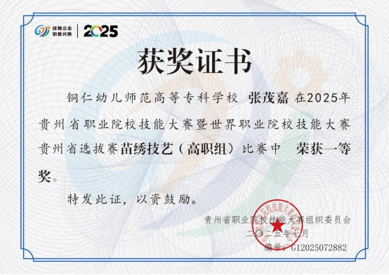 近日,2025年贵州省职业院校技能大赛暨世界职业院校技能大赛贵州省选拔赛获奖名单公布,艺术系苗绣技艺团队创下我校在该赛事中的历史最佳成绩,获一等奖3个,二等奖5个,充分展现了我校在传统工艺与现代设计融合教育方面的突出成果。